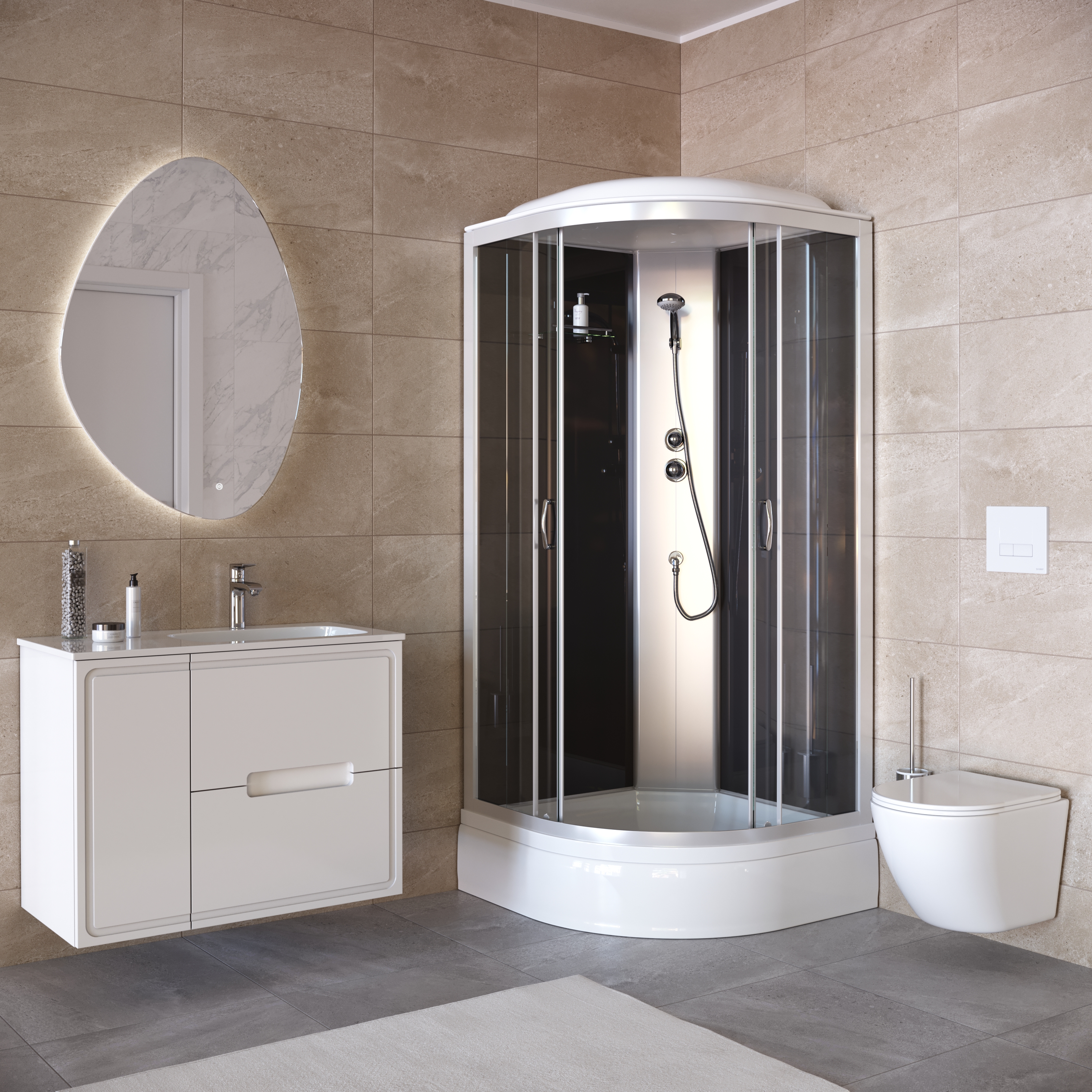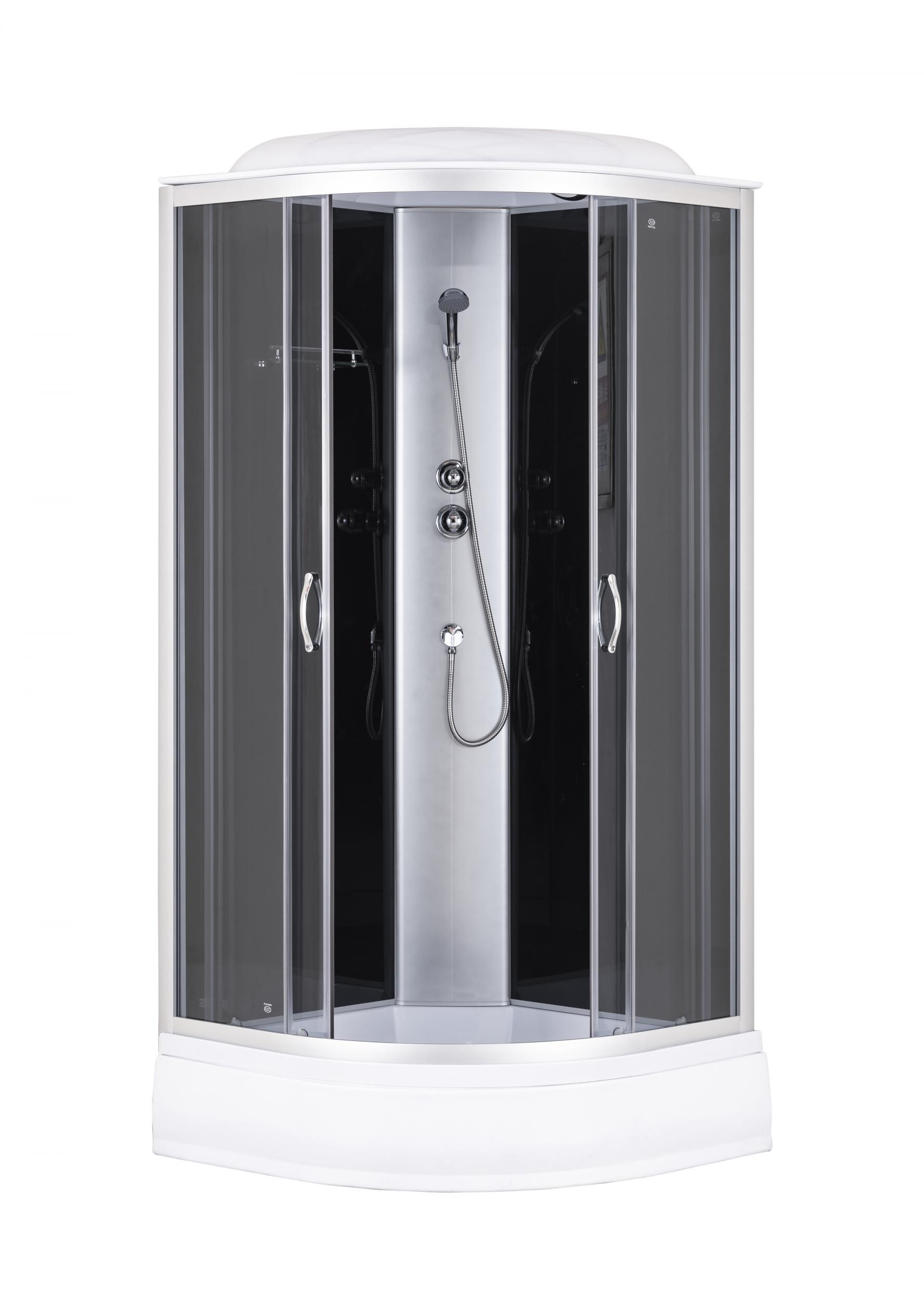 Душевая кабина Taliente TA-9091G, задние стенки - чёрные, профиль - матовый хром, стекло - тонированное 4 мм, ширина входа - 490 мм.