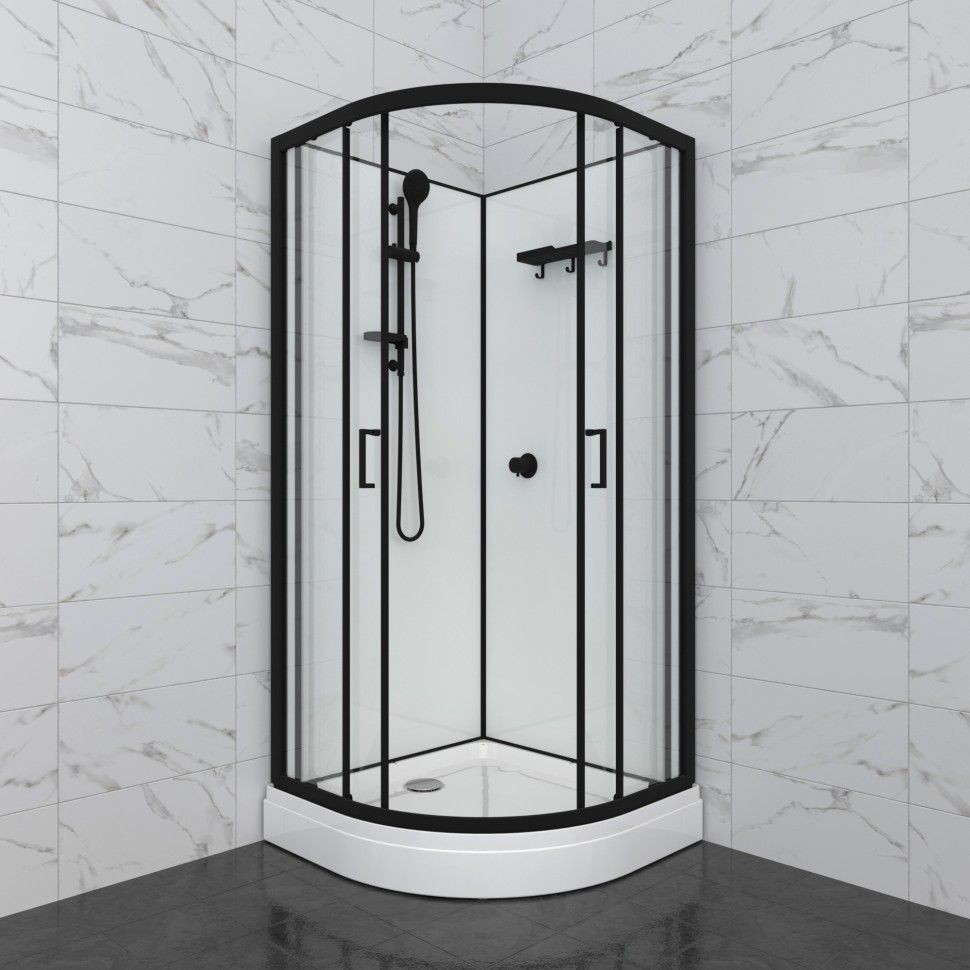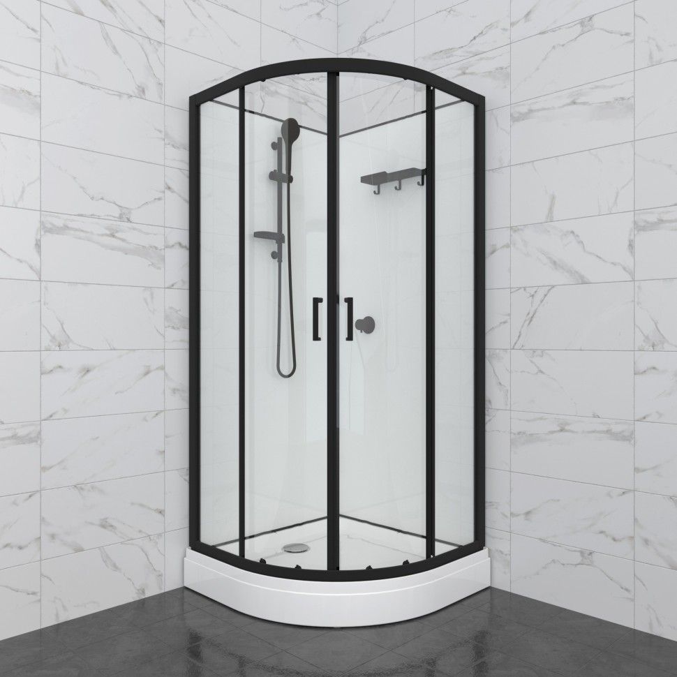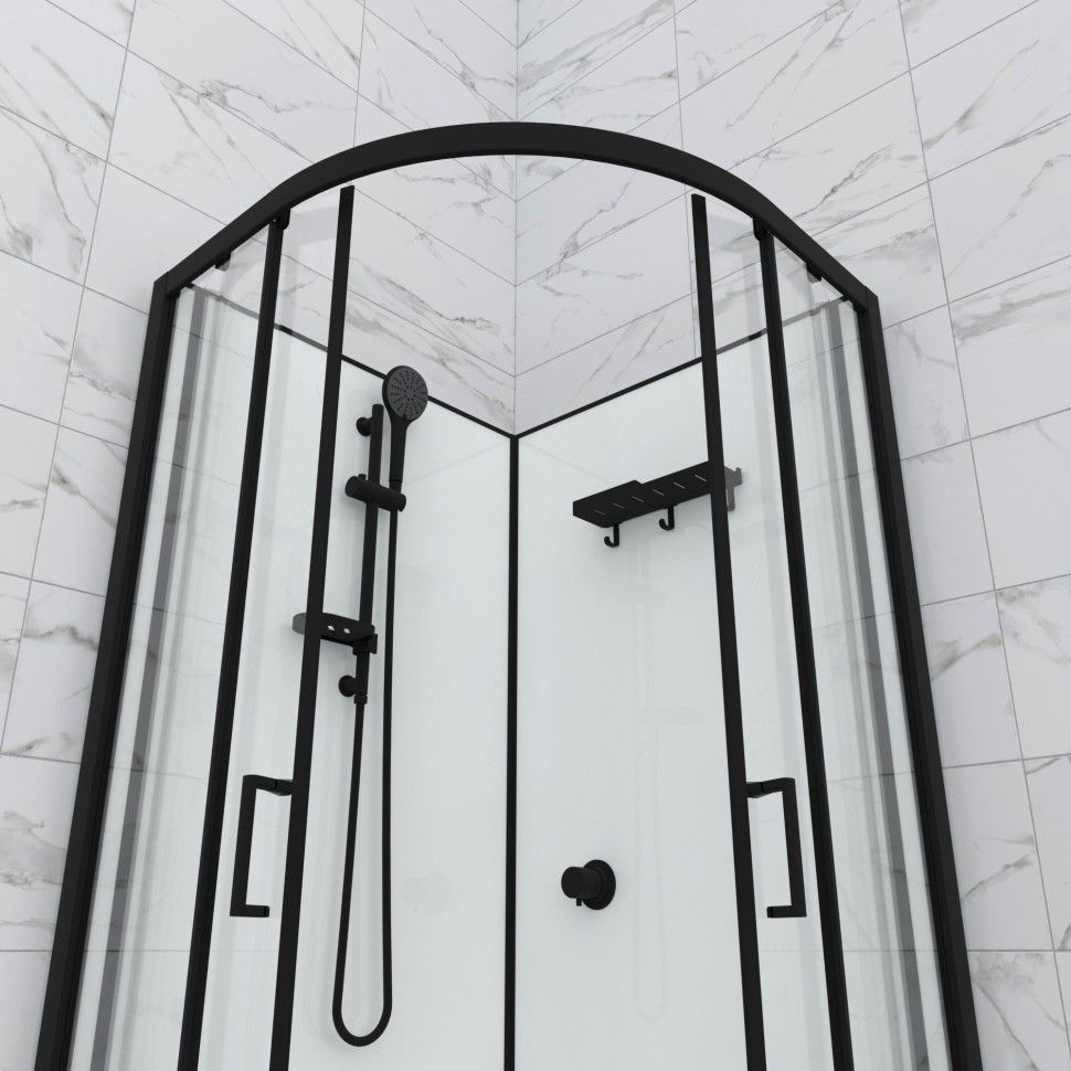 Душевая кабина Тритон Прайм, размер 900x900x2055 мм, профиль чёрный, стекло прозрачное. Ширина входа 510 мм.