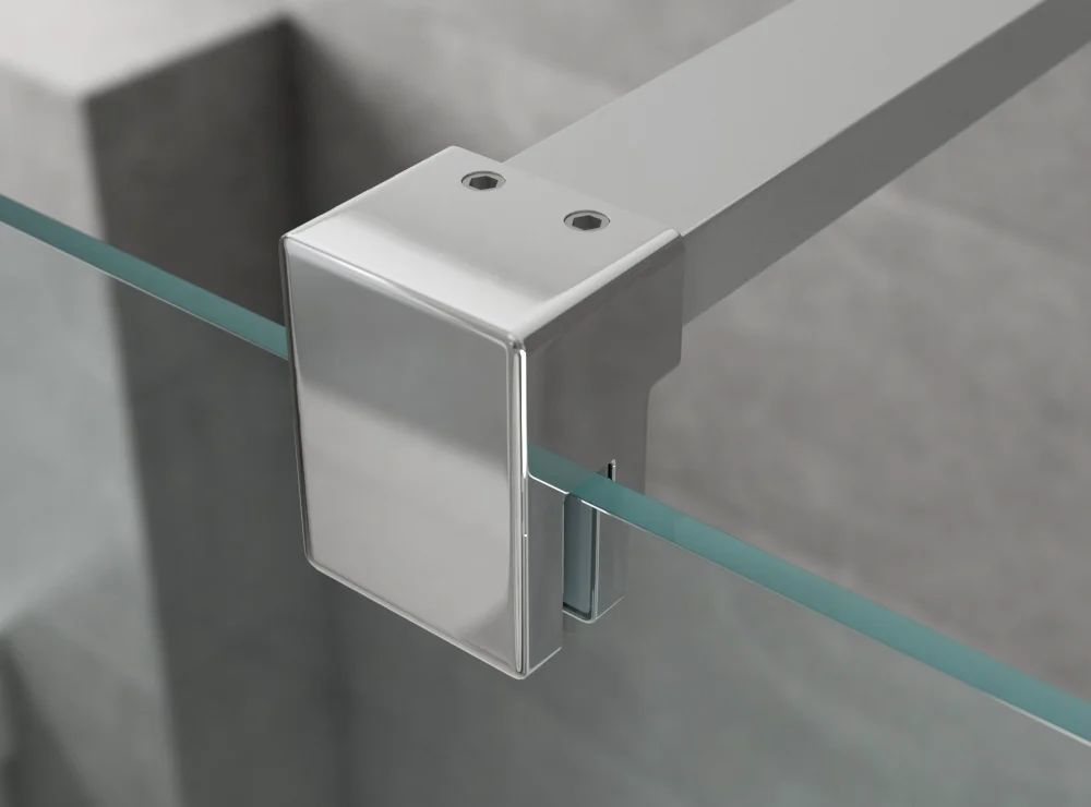 Душевая перегородка Ambassador Walk-in с кронштейном, размер 900х2000 мм, профиль хром, стекло прозрачное. Габариты регулировки (890-900)x2000 мм, ширина входа 1000 мм.