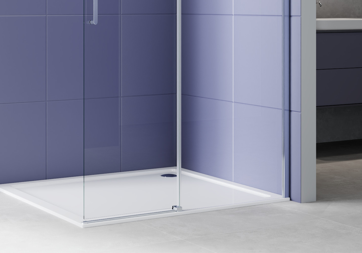 - Индивидуальная конфигурация: Система Walk-in предлагает гибкость в планировке: можно установить одно стекло-преграду, L-образную или П-образную конструкцию, в зависимости от планировки вашей ванной.