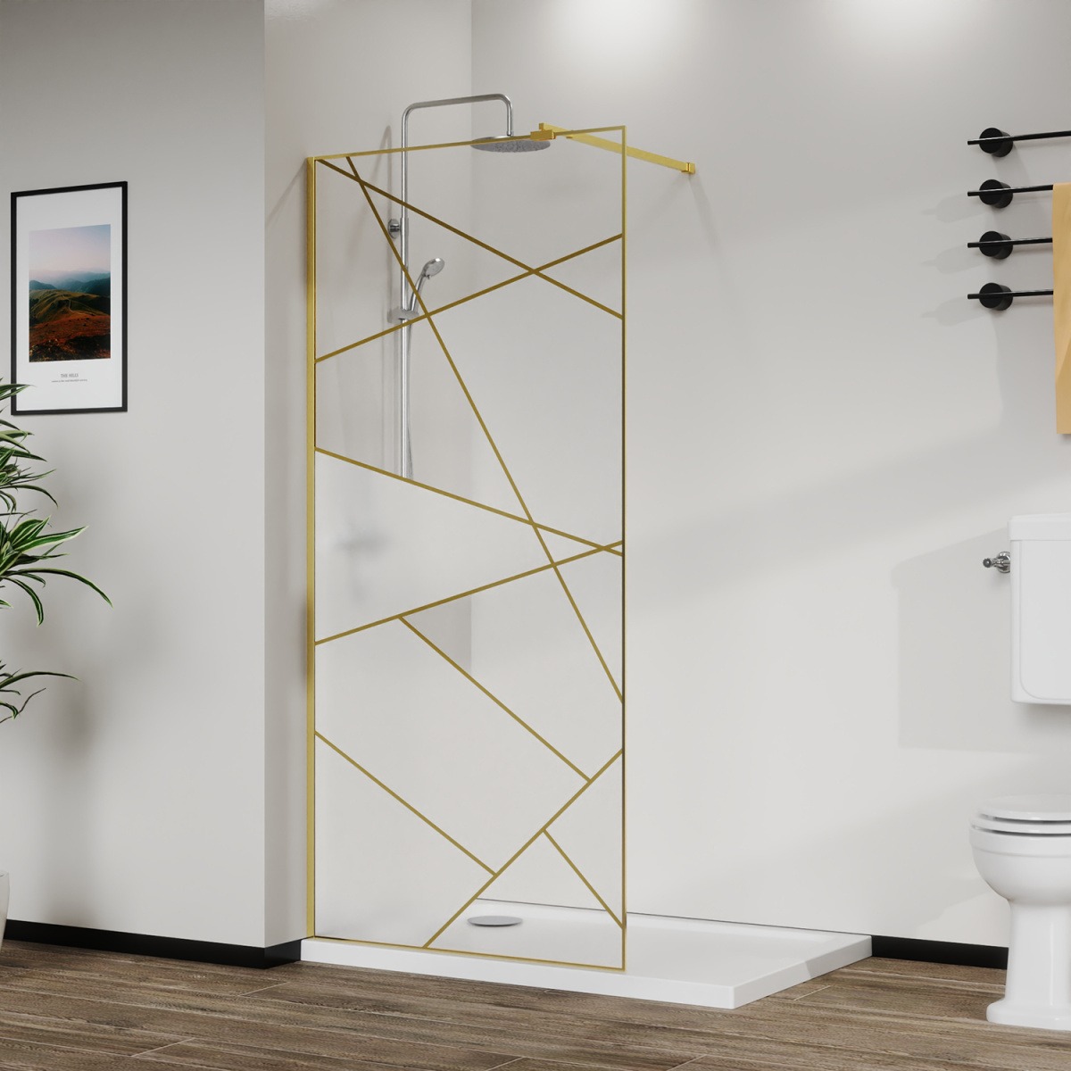 Душевая перегородка Azario Walk-in 120 см AZ-271-120-BGL-CGP (стекло 8 мм) золото брашированное/узор