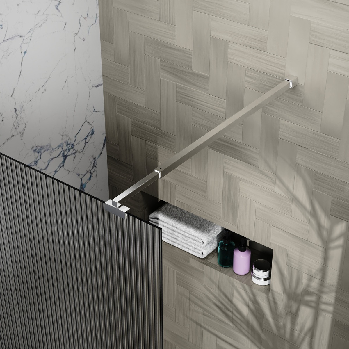 Душевая перегородка Azario Walk-in 90 см AZ-251-90-CH-CRF (стекло 8 мм) с кронштейном в комплекте, хром/рифленое