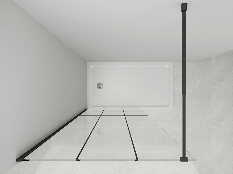 Душевая перегородка Loranto Walk-in 1200х2000 мм, стекло - прозрачное 8 мм с рисунком "Лофт клетка", регулируемый кронштейн 70-120, профиль - чёрный матовый. Душевой поддон приобретается отдельно.