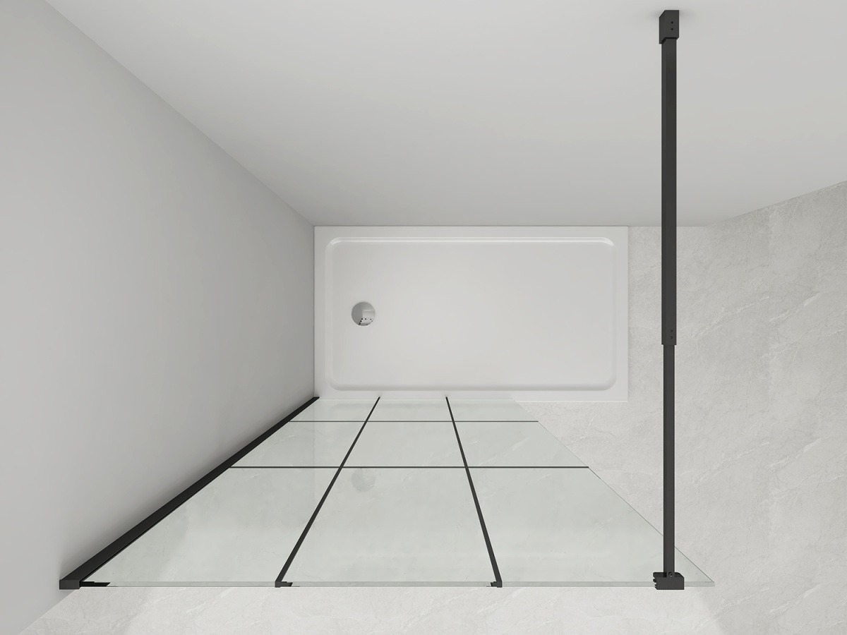 Душевая перегородка Loranto Walk-in 700х2000 мм, стекло - прозрачное 8 мм с рисунком "Лофт клетка", регулируемый кронштейн 70-120, профиль - чёрный матовый. Душевой поддон приобретается отдельно.