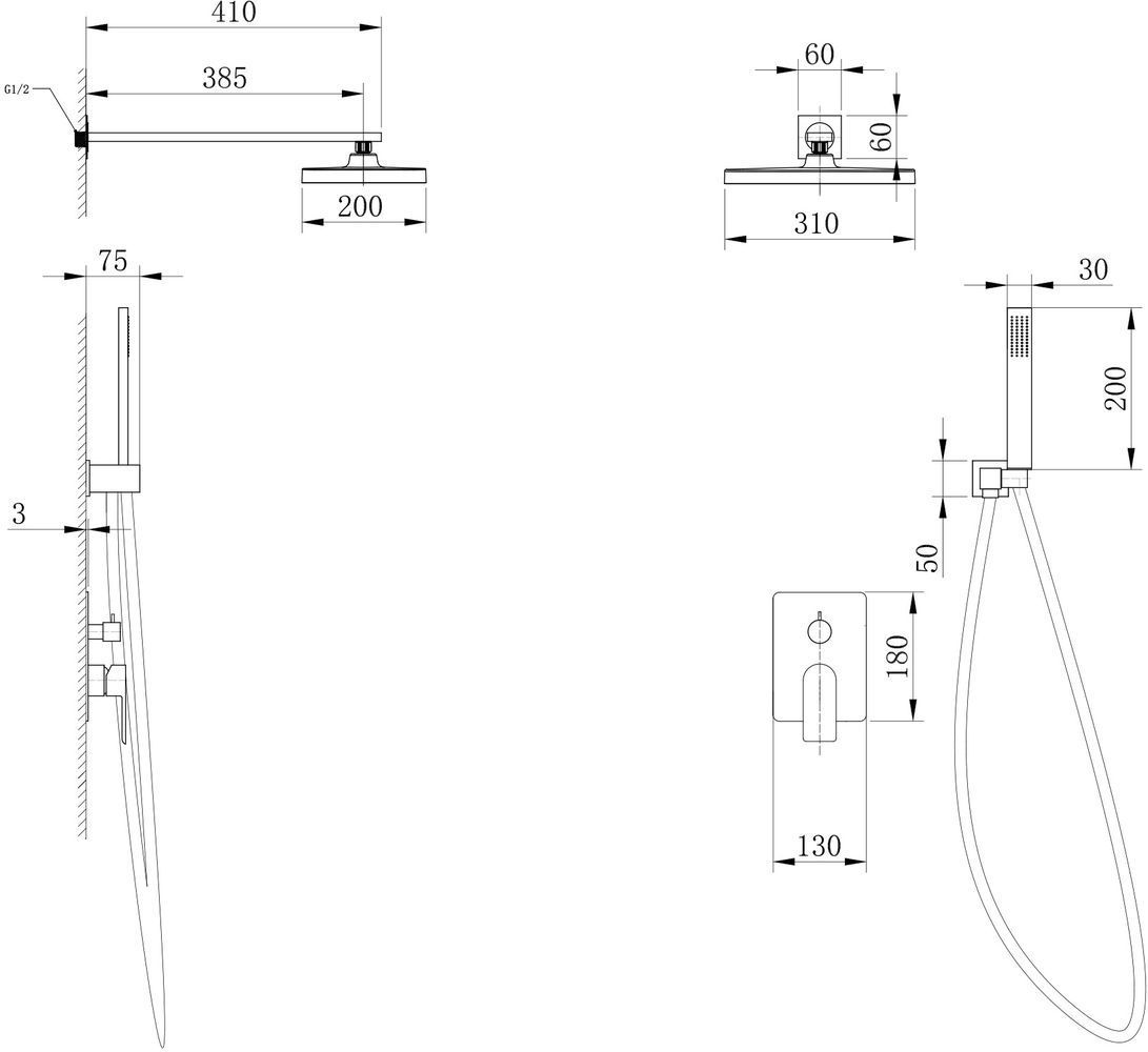 Душевая система для душа Abber Weiss Insel AF8018FW, белый матовый