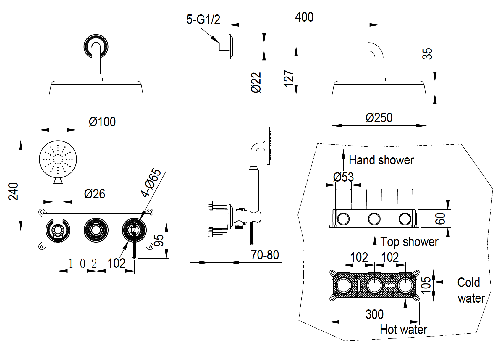 - верхний душ ,