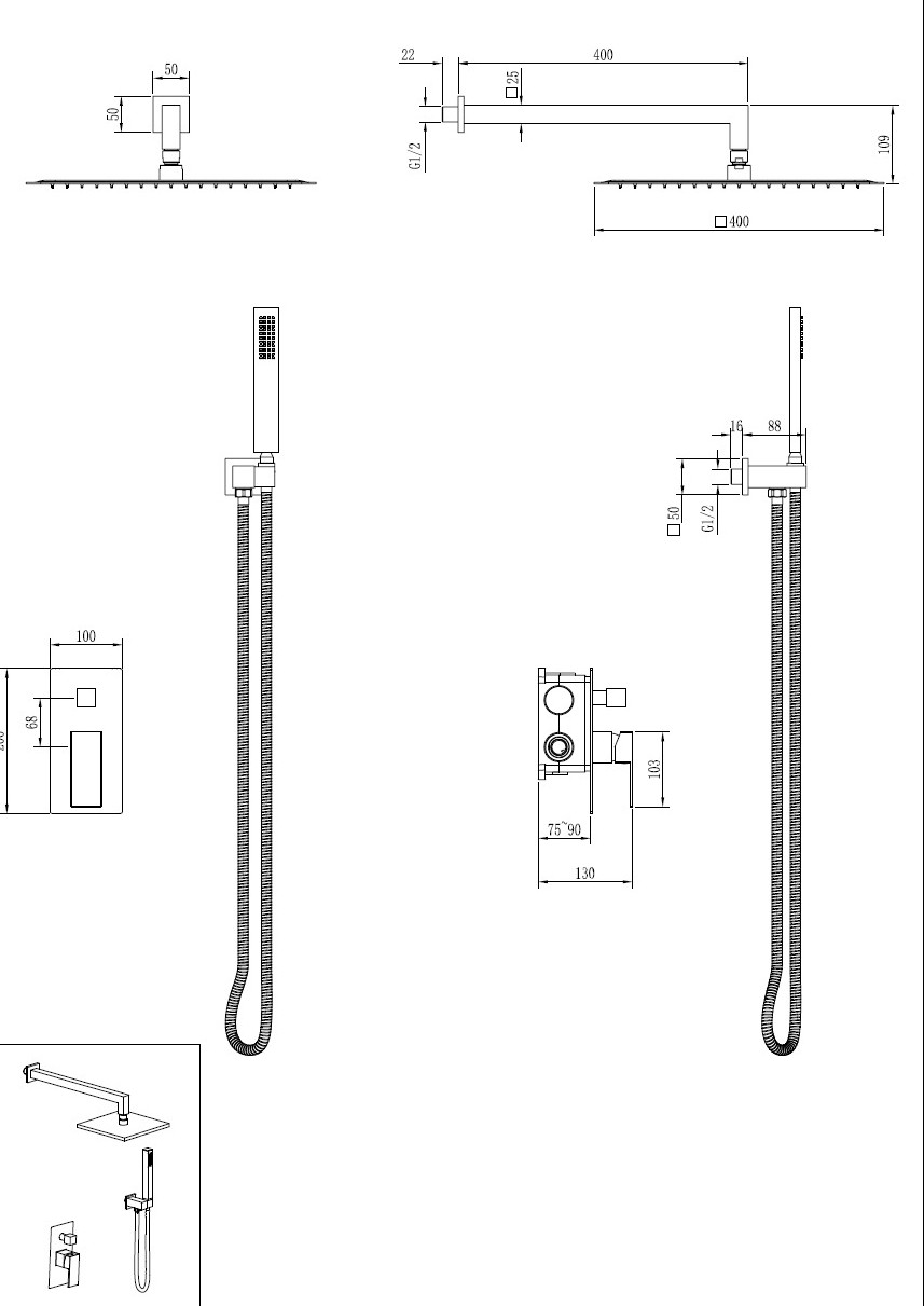 Душевая система для душа Boheme Qubic 474-3-BRB (со скрытой частью) брашированная бронза