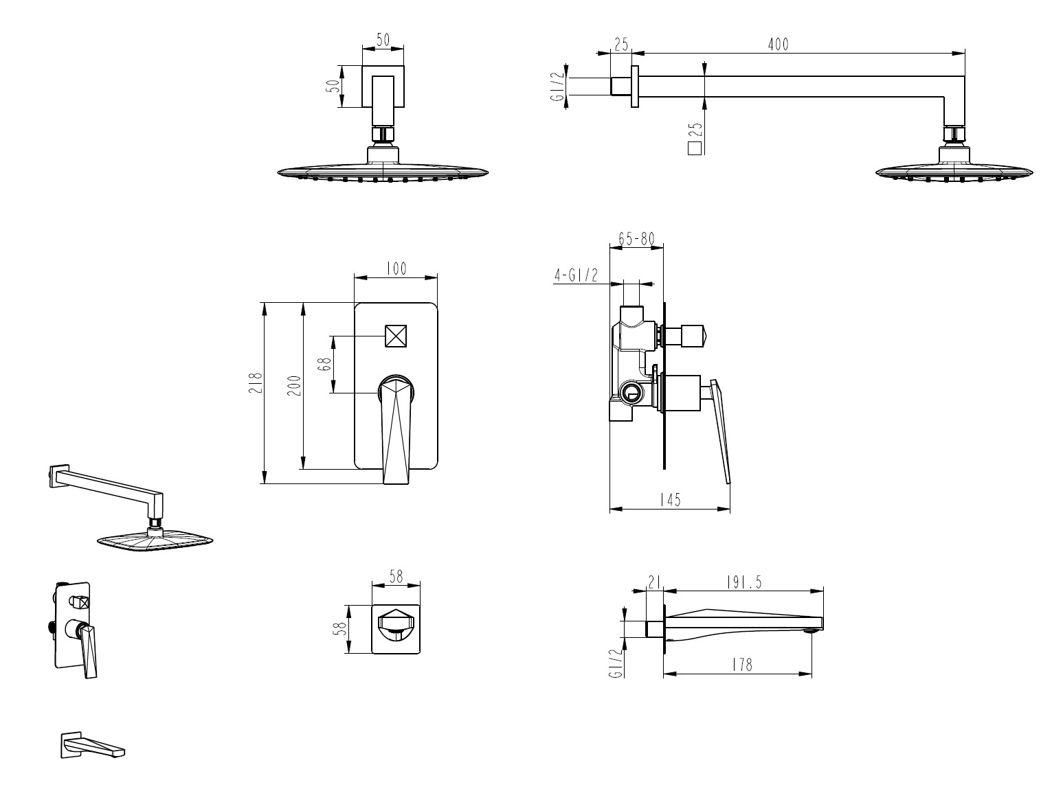 Душевая система для душа Boheme Venturo 374-SGM-2 со скрытой частью в комплекте, материал - латунь, цвет графит глянец.