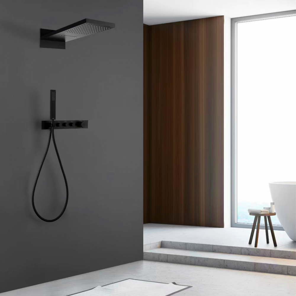 Душевая система для душа с термостатом Abber Rund AF8752B, материал - латунь, цвет - черный матовый.