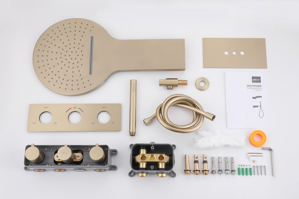 Душевая система для душа с термостатом Abber Wasser Kreis AF8151G, со скрытой частью в комплекте, материал - латунь, цвет - золото матовое.