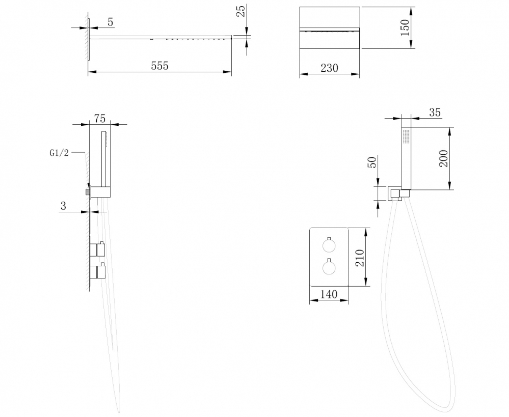 Душевая система для душа с термостатом Abber Weiss Insel AF8052, материал - латунь, цвет - хром.