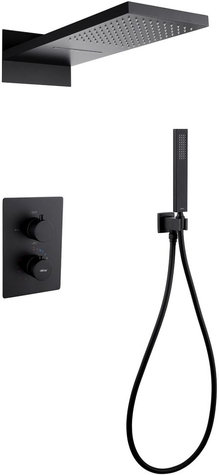 Душевая система для душа с термостатом Abber Weiss Insel AF8052B, материал - латунь, цвет - чёрный матовый.