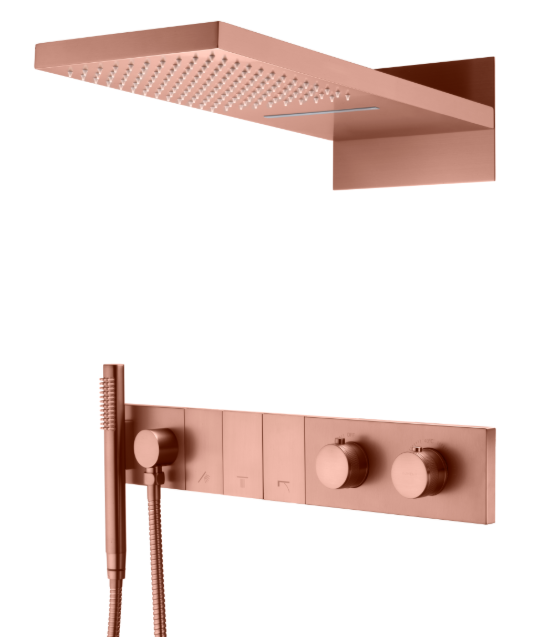 Душевая система для душа с термостатом Boheme Zodiac 133-CB, скрытая часть в комплекте, материал латунь, цвет брашированная медь.