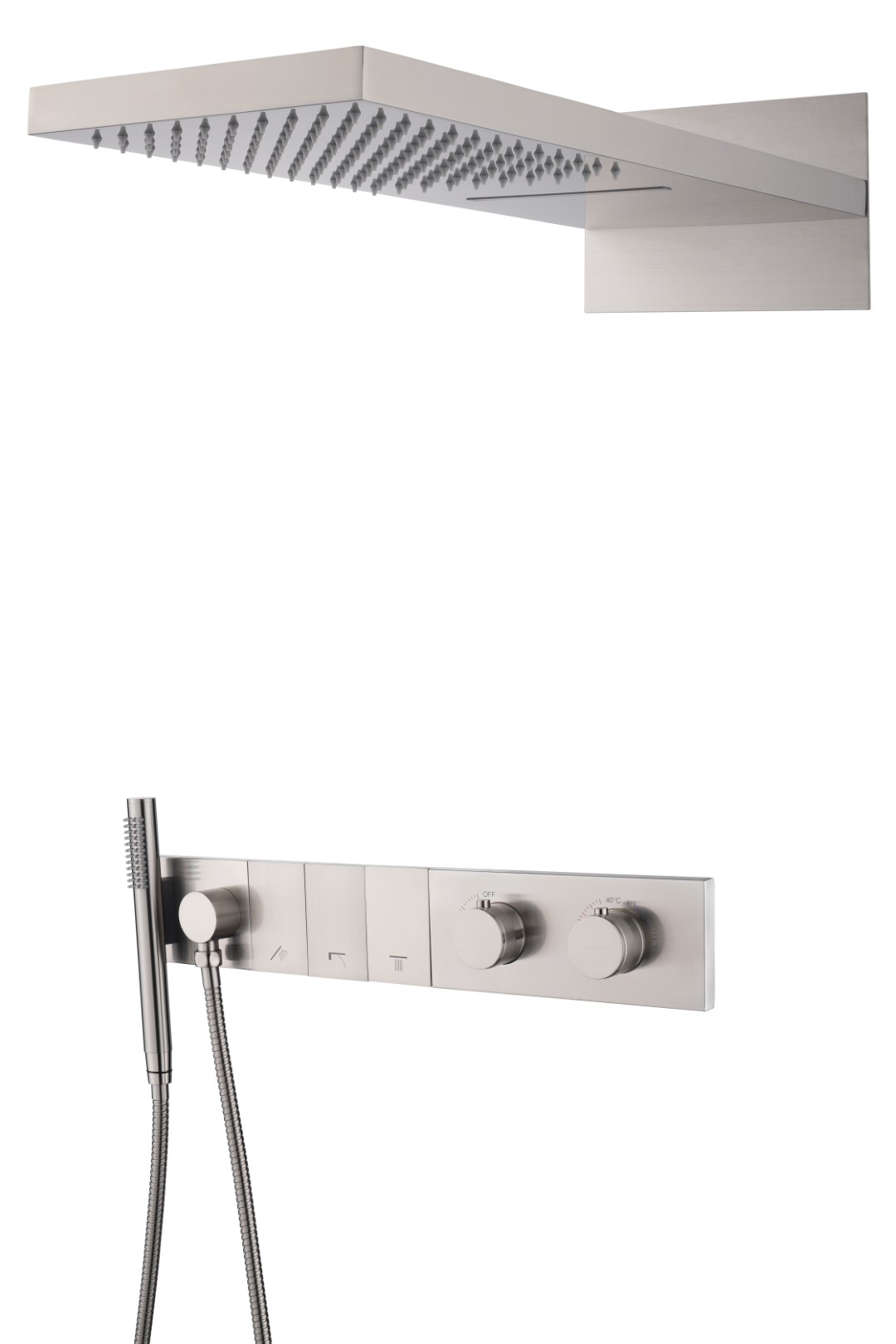 - Верхний душ размером 550мм*230мм с функцией тропического душа и водопада.