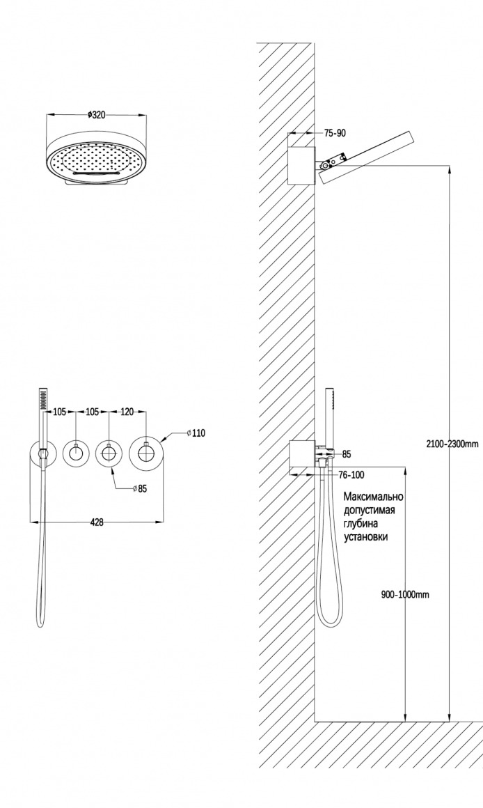 Характеристики душевая система без излива Grocenberg (GB5020NK)
