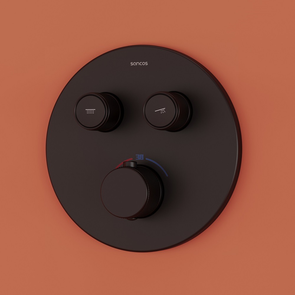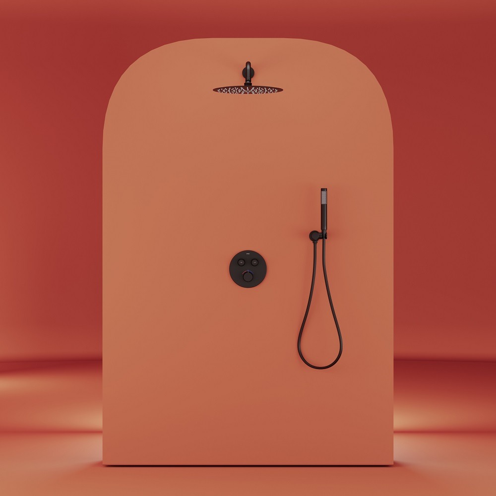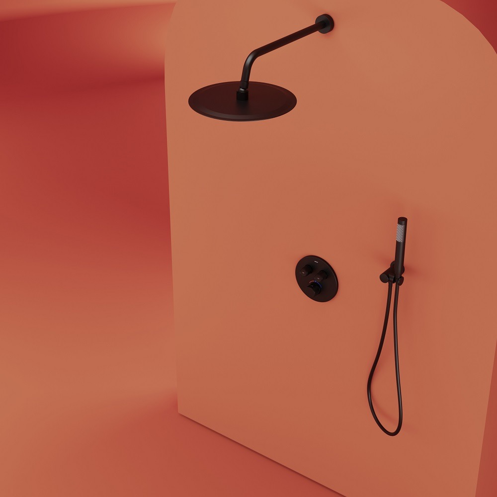 Душевая система для душа с термостатом Sancos Link SC3005MB со скрытой частью, материал - латунь, цвет - чёрный матовый.
