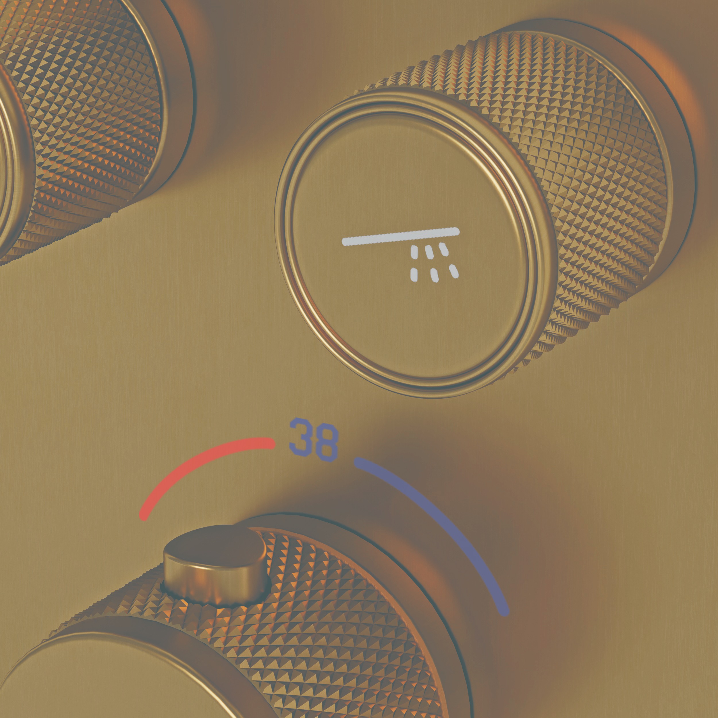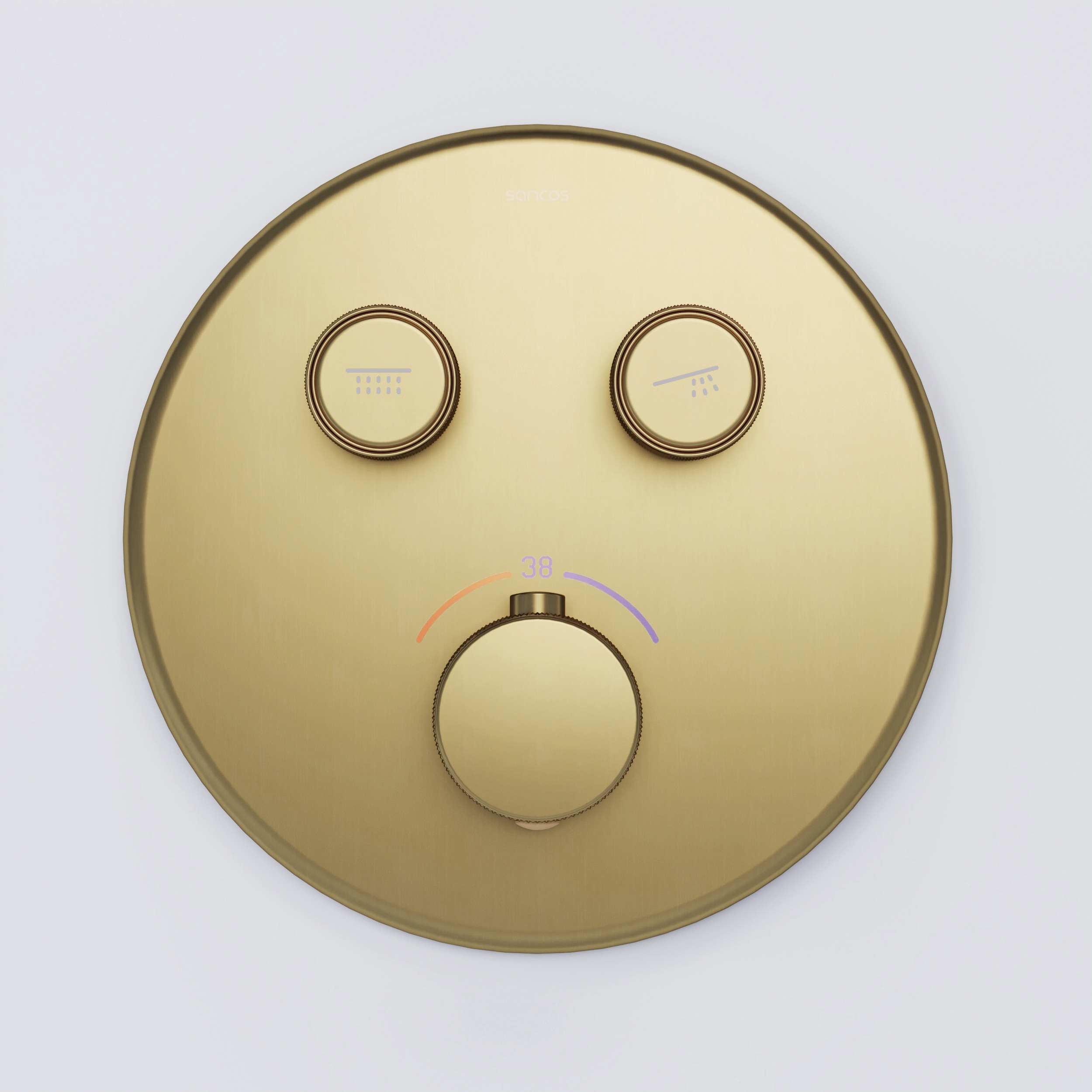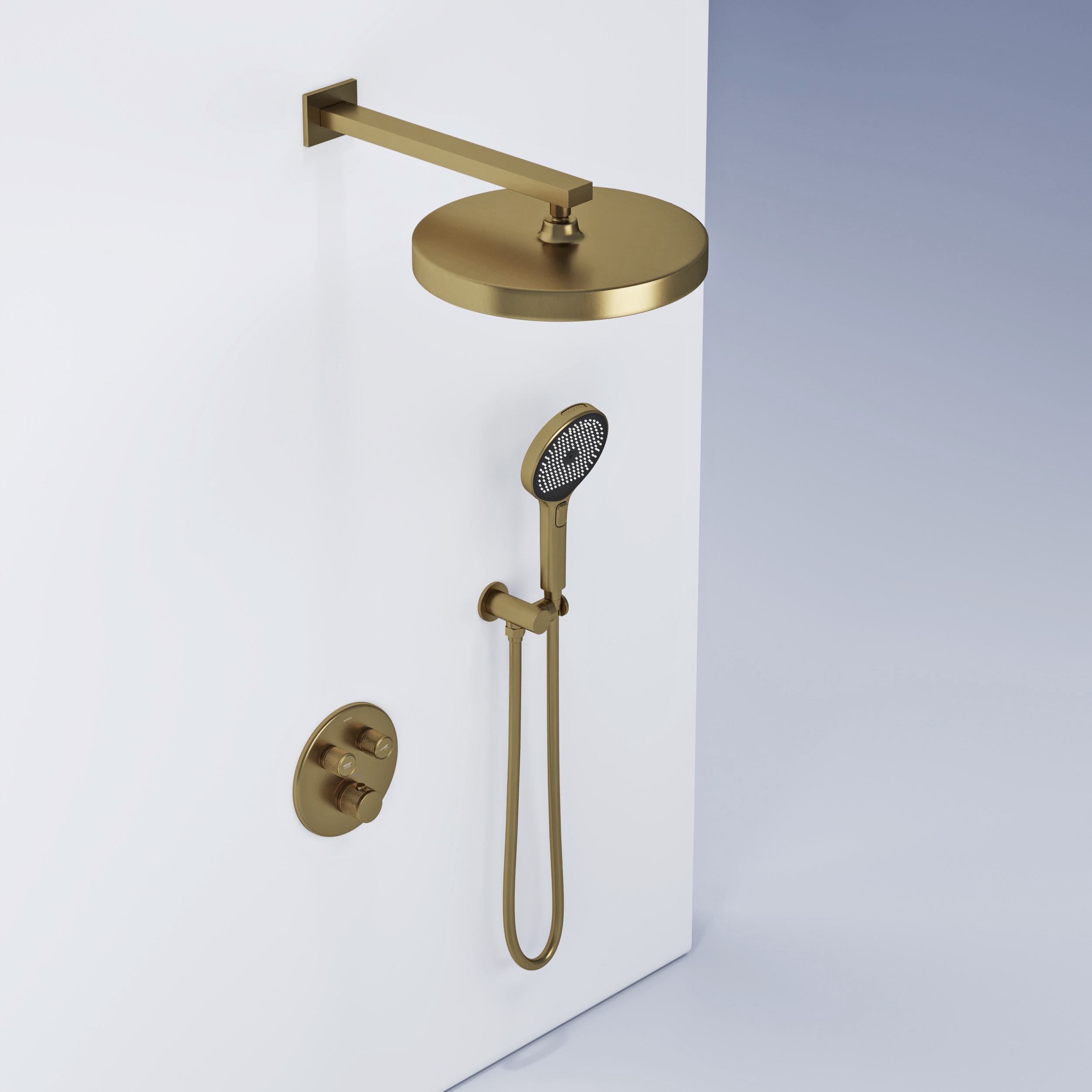 Душевая система для душа с термостатом Sancos Space SC3006BG со скрытой частью, материал - латунь, цвет - брашированное золото.