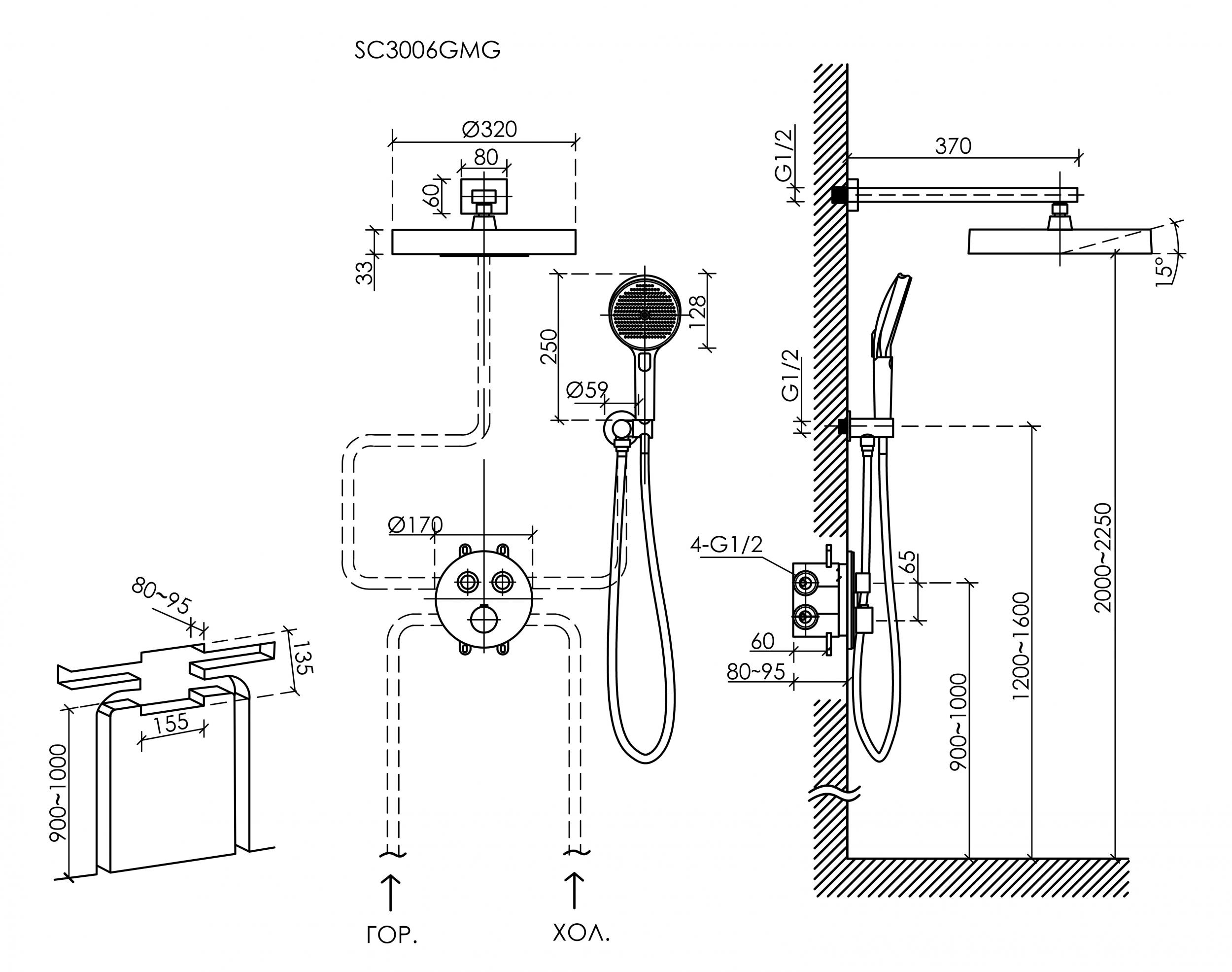 Характеристики душевая система без излива Sancos (SC3006BG)