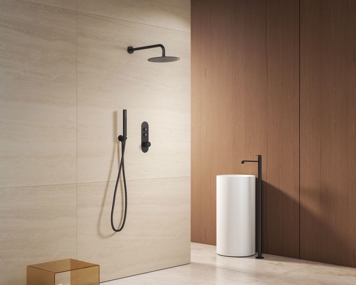 Душевая система для душа с термостатом SantiLine SL-9016MB, чёрный матовый