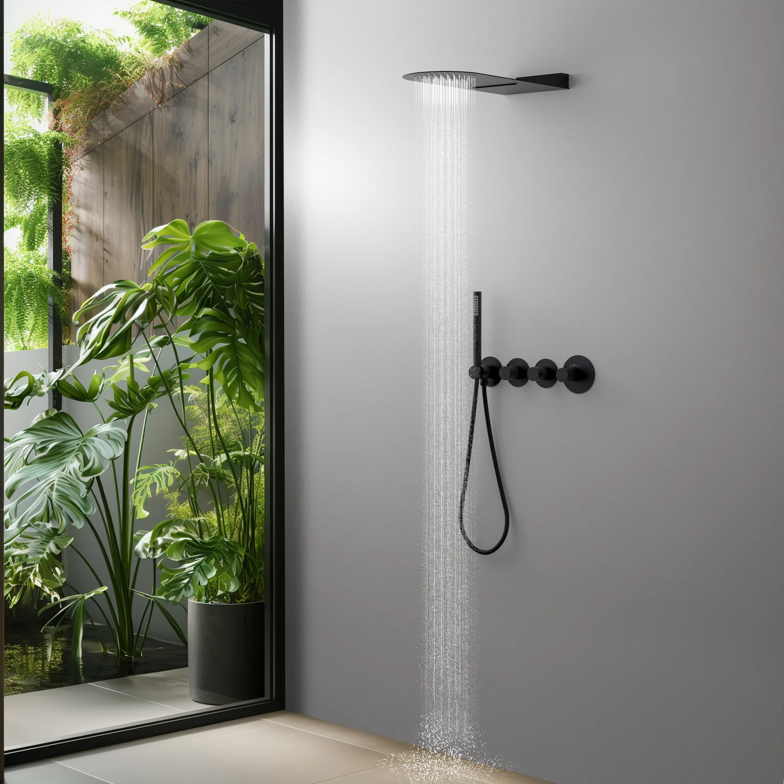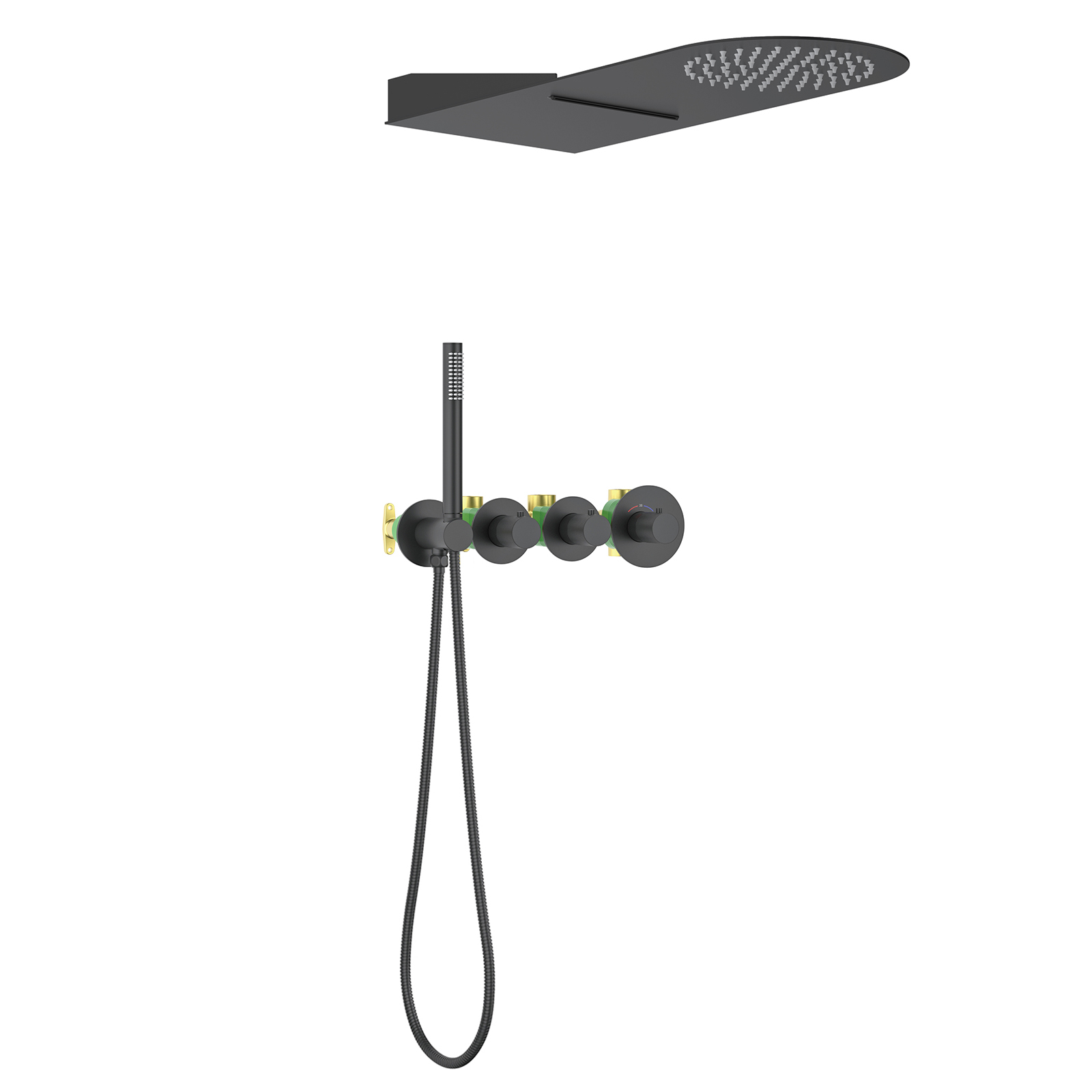 Душевая система для душа с термостатом Timo Saona SX-2350/03SM (со скрытой частью) чёрный матовый