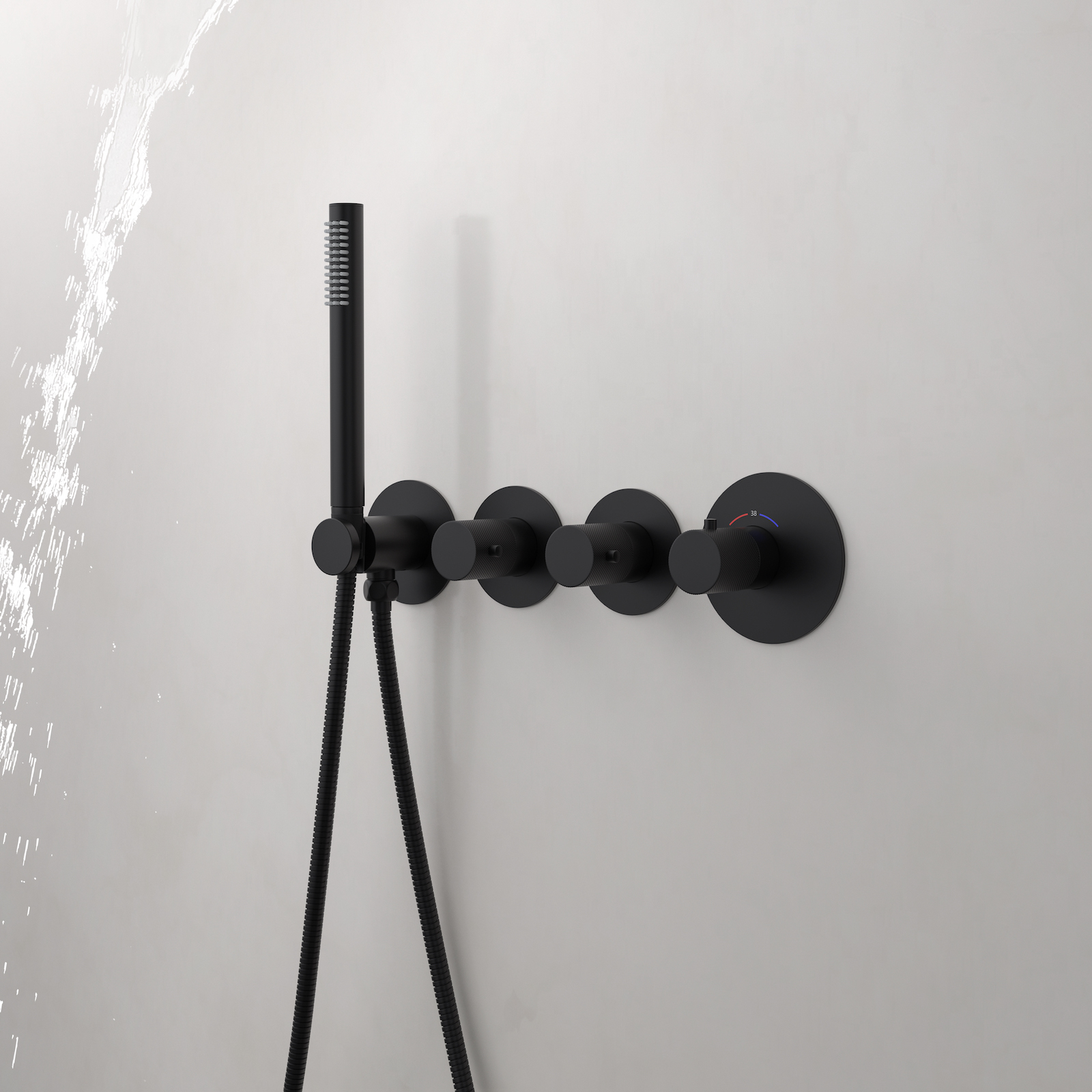 Душевая система с термостатом Timo Saona 2350 относится к премиальному сегменту, предназначена для монтажа в полой или твердой стене. Термостатический картридж поддерживает стабильную температуру воды, обеспечивая максимально комфортные условия для принятия водных процедур. Настенный душ с двумя режимами позволяет принимать водные процедуры в зависимости от настроения. Регулируя напор воды можно получить массажное воздействие различной интенсивности. Используя режим "каскад"- получают седативное (успокаивающее) воздействие на затылочную часть головы или шейный отдел. Основные преимущества встроенной системы: элегантный внешний вид, все коммуникации и крепления спрятаны в стену, снаружи видны только декоративные элементы. Установить встроенную систему можно в любом месте. Использовать такой смеситель очень удобно, регулировка температуры воды осуществляется ручкой термостата (расположена справа). Переключение режимов "каскад", "тропический душ", "ручной душ" и увеличение напора осуществляется поворотом ручек диверторов расположенных слева от термостата. В положении ручек диверторов в положение 12:00 (смеситель выключен). Смеситель может работать в нескольких режимах одновременно"каскад"+"ручной душ", "тропический душ"+"ручной душ". Сложностей монтажа не возникает при установке элементов душевой системы опытным сантехником.