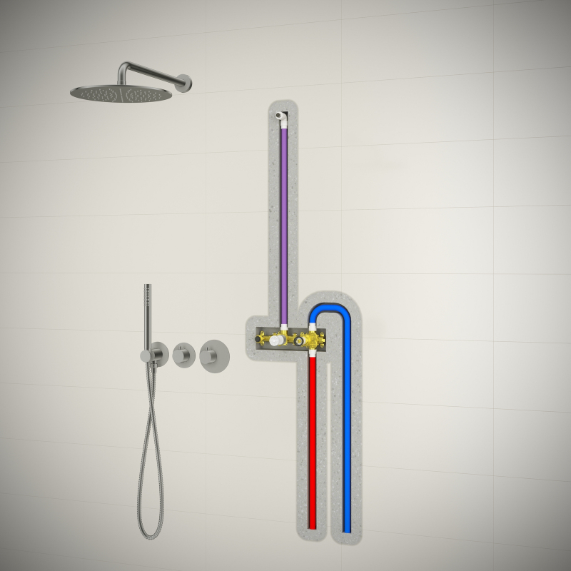 Встраиваемая душевая система с термостатом Timo Saona 2359 относится к премиальному сегменту, предназначена для монтажа в полой или твердой стене. Термостатический картридж поддерживает стабильную температуру воды, обеспечивая максимально комфортные условия для принятия водных процедур. Верхний душ создает имитацию проливного дождя, вода обливает человека целиком. Регулируя напор воды можно получить массажное воздействие, что очень полезно для здоровья. Основные преимущества встроенной системы: элегантный внешний вид, все коммуникации и крепления спрятаны в стену и потолок, снаружи видны только декоративные элементы. Установить встроенную систему можно в любом месте. Сложностей монтажа не возникает при установке элементов душевой системы опытным сантехником.