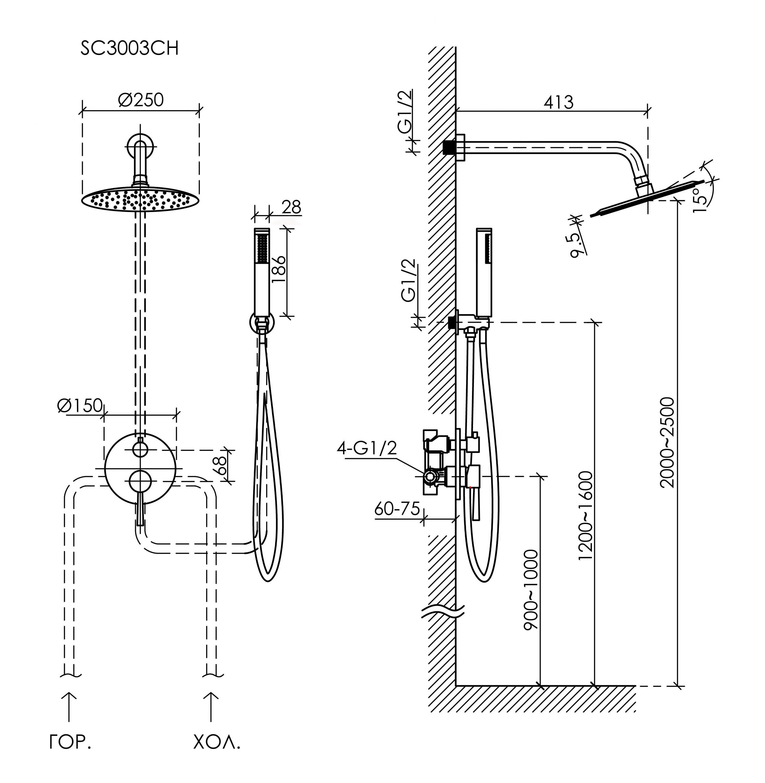Характеристики душевая система без излива Sancos (SC3003CH)