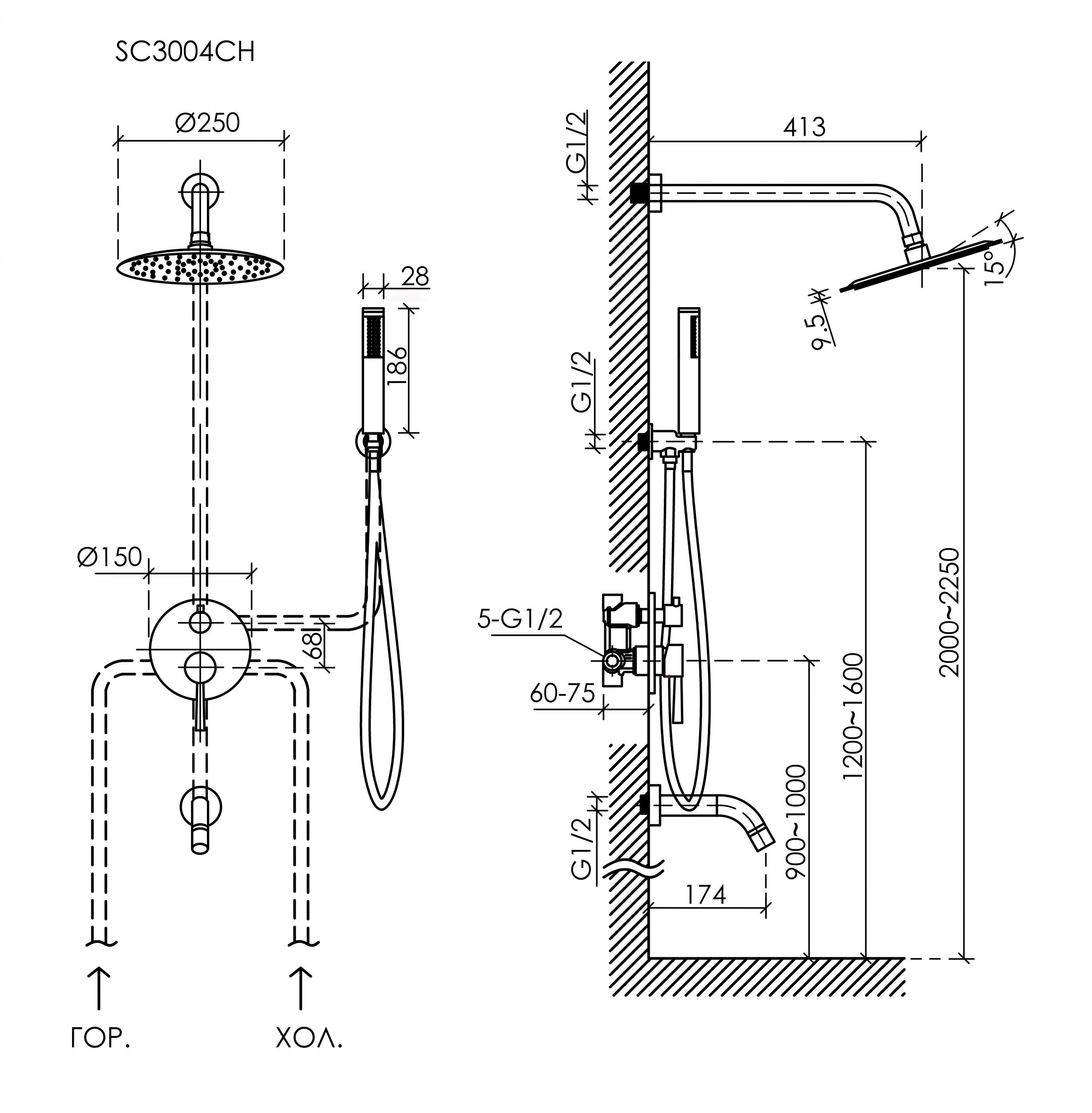 - верхний душ ,