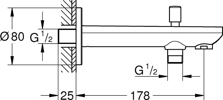 Излив для ванны GROHE BauContemporary с переключателем ванна/душ, хром