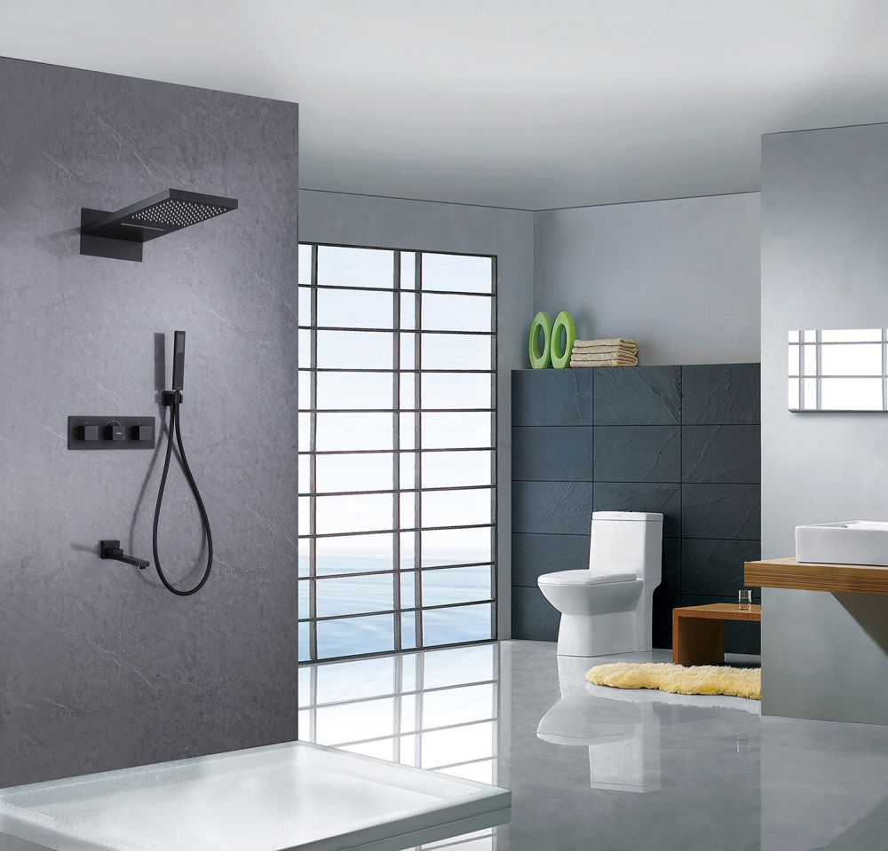 Душевая система для ванны с термостатом Abber Daheim AF8253B, чёрный матовый