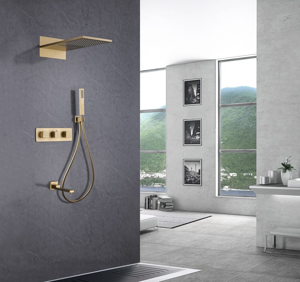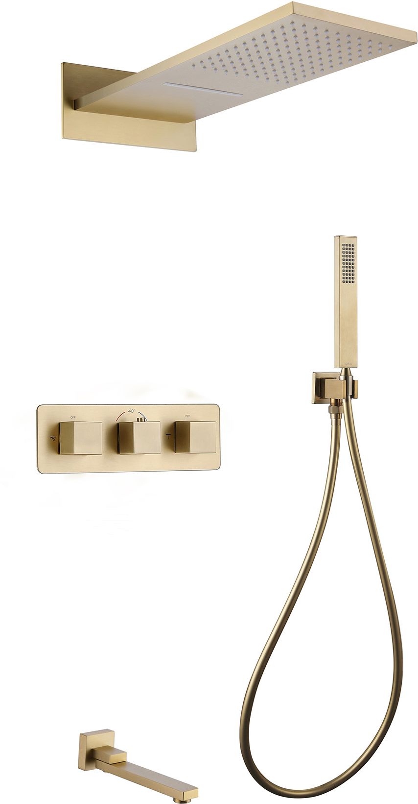 Душевая система для ванны с термостатом Abber Daheim AF8253G, золото матовый