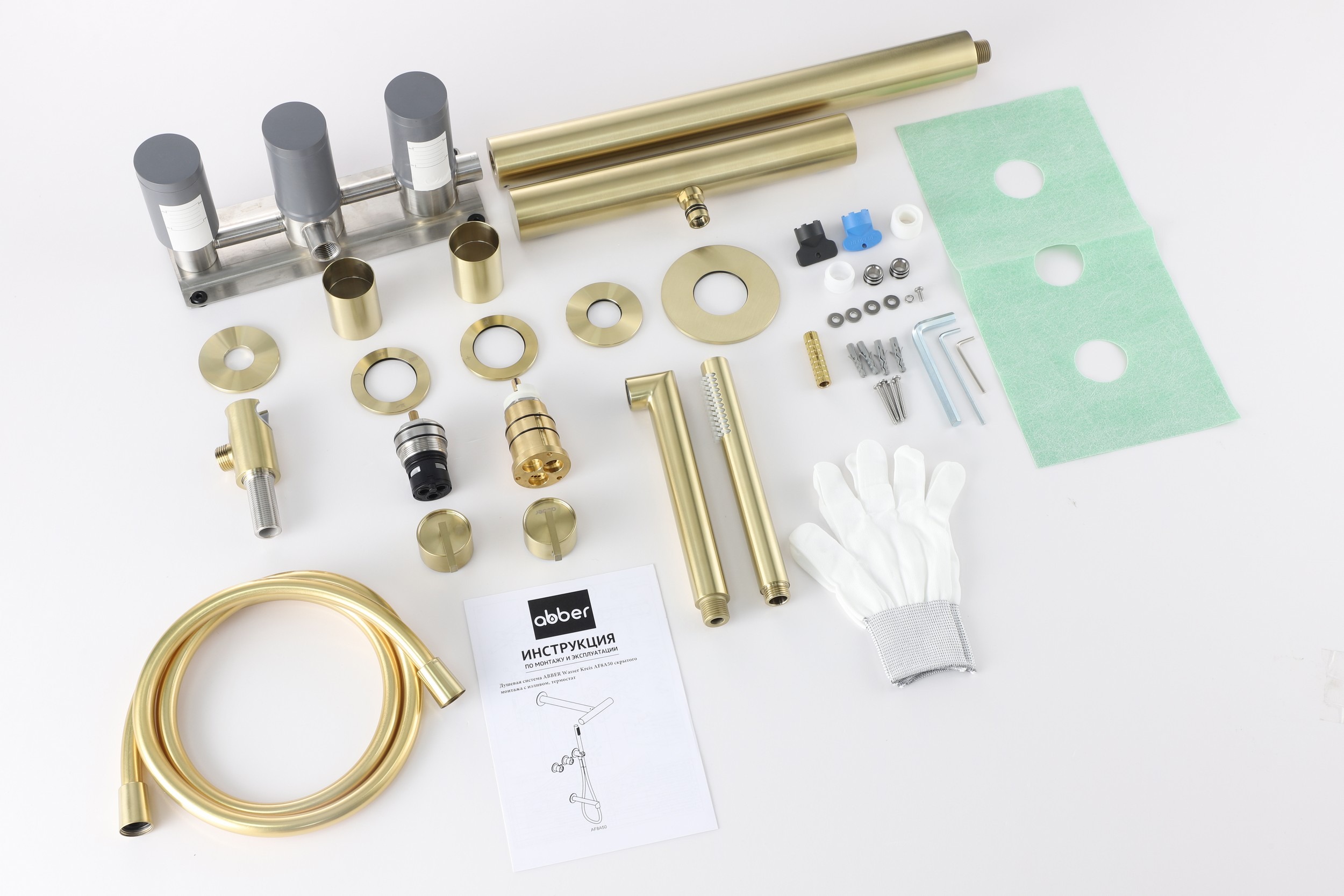 Душевая система для ванны с термостатом Abber Perfekte 316 AF8A50BG, золото брашированное