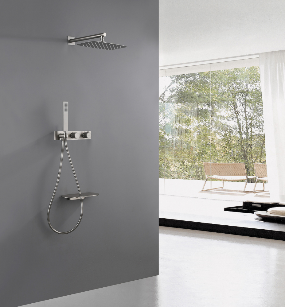 Душевая система для ванны с термостатом Abber Rund AF8750SP (со скрытой частью) сатин