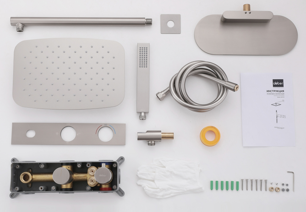 Душевая система для ванны с термостатом Abber Rund AF8750SP, со скрытой частью в комплекте, материал - латунь, цвет - сатин.