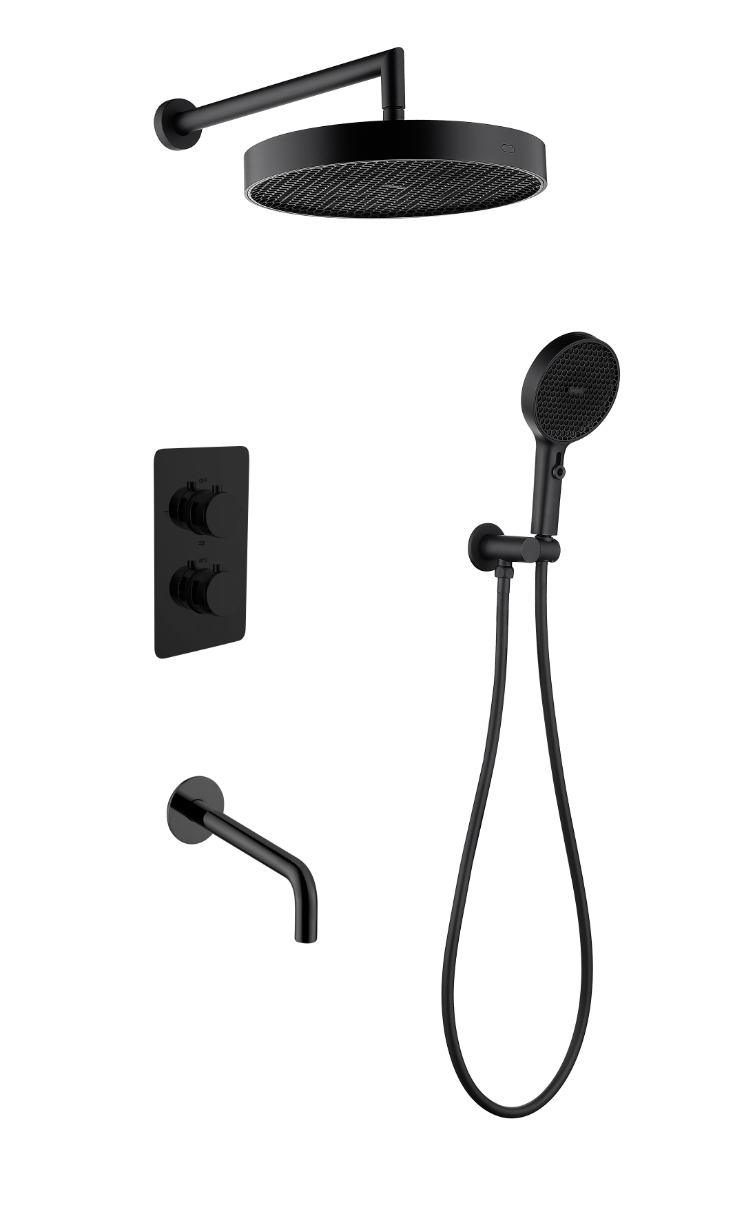 Душевая система для ванны с термостатом Boheme Cell 427-B + 134-3-B + 625-B (со скрытой частью) чёрный