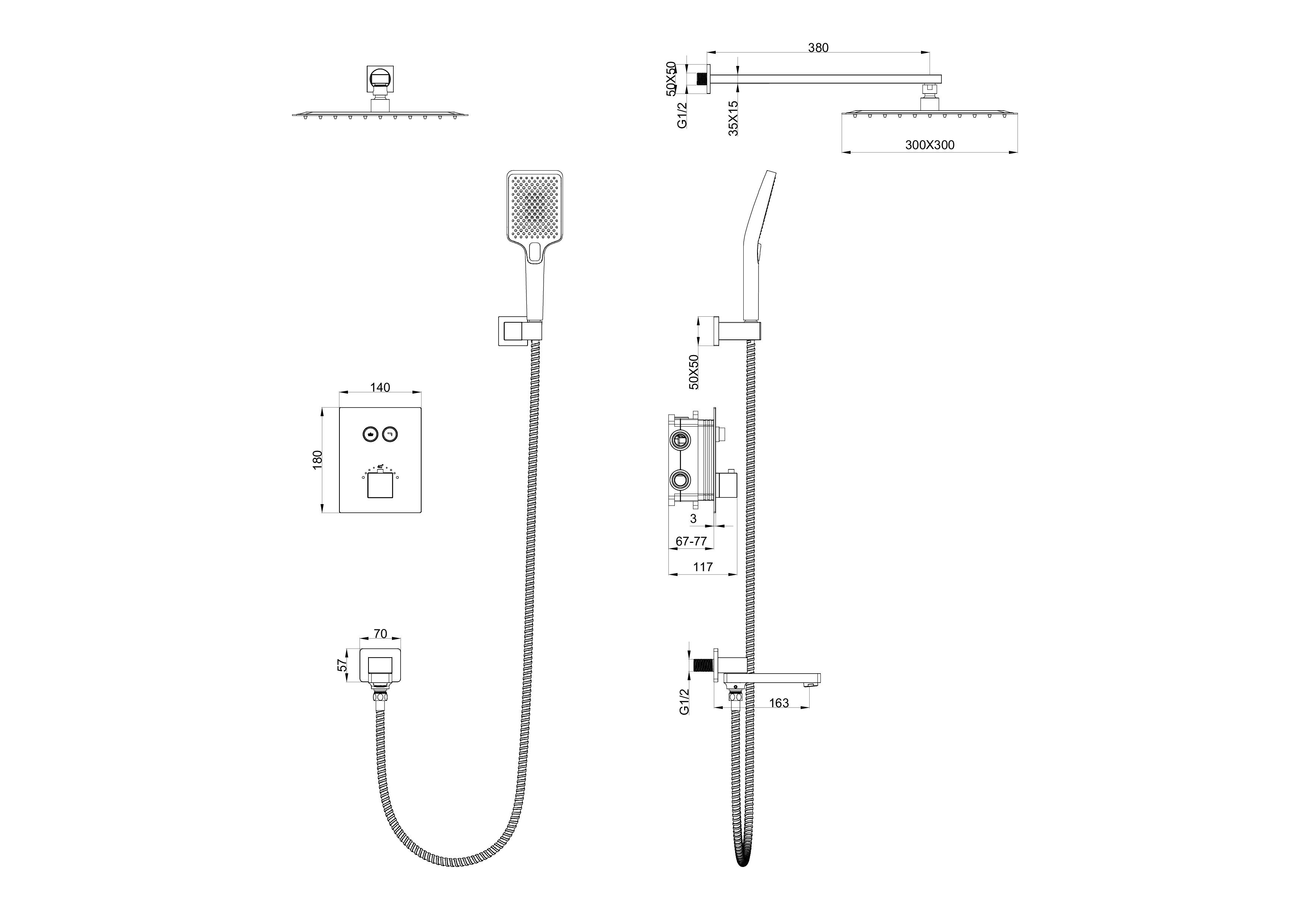 Характеристики душевая система с изливом Wonzon & Woghand (WW-88929003-BG)