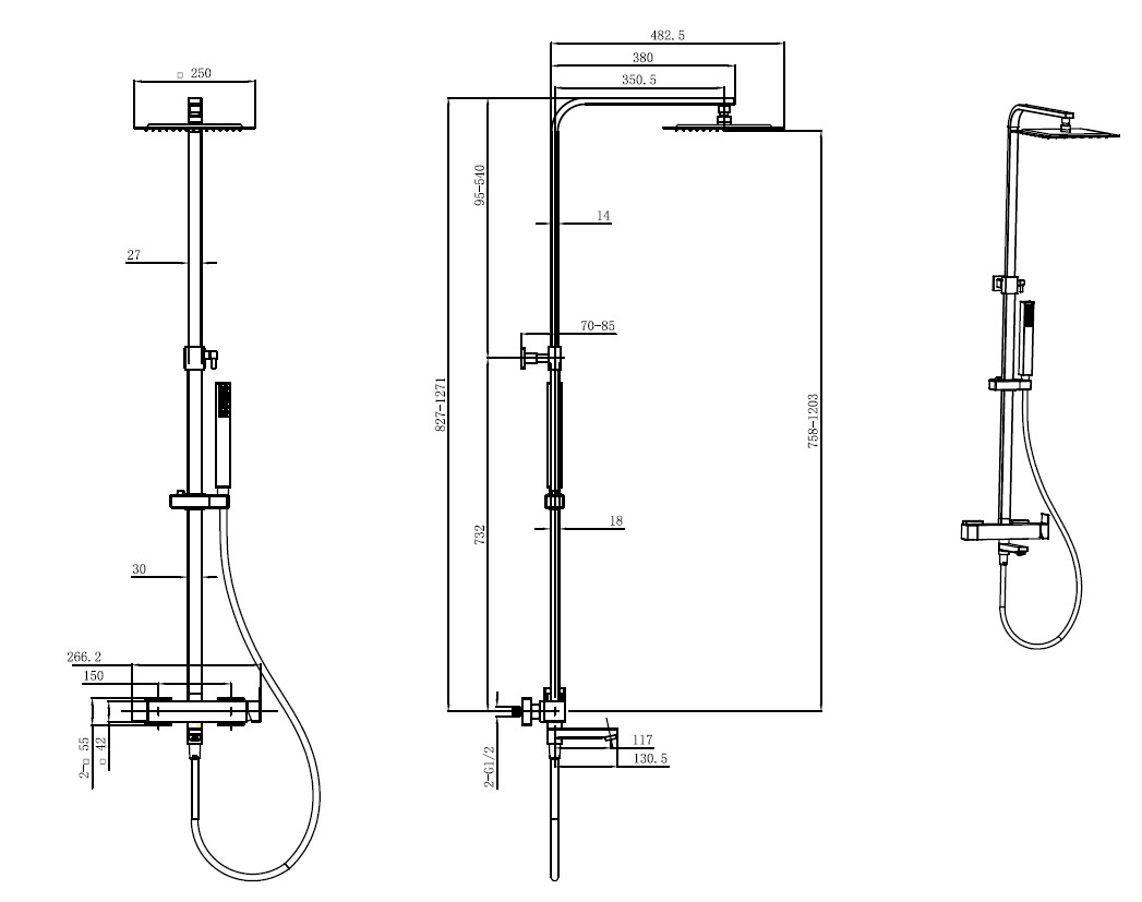 - Шланг для душа: 1,5 м шланг для душа PVC (EPDM inside, anti-twist, brass nut)