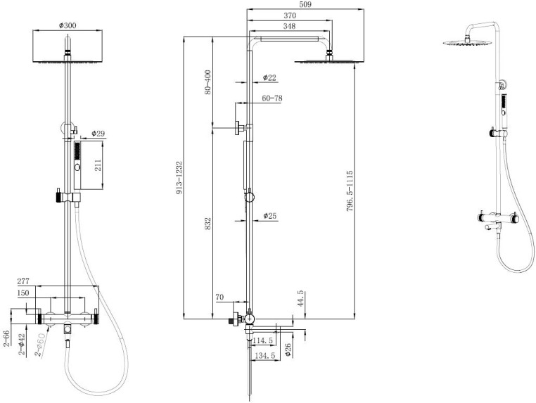 - Шланг для душа: 1,5 м шланг для душа SUS304 (EPDM inside, anti-twist, brass nut)