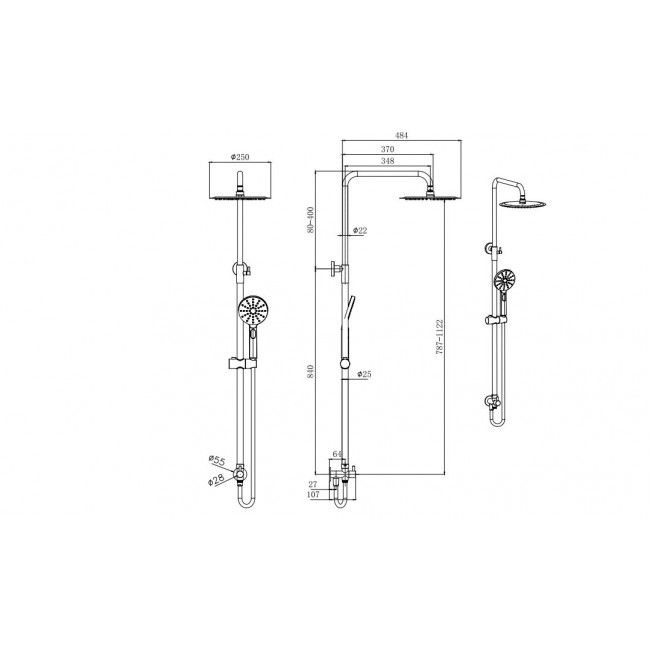 - регулируемая душевая штанга из нержавеющей стали, выдвигающаяся до 1122 мм в высоту увеличенный диаметр тропического душа