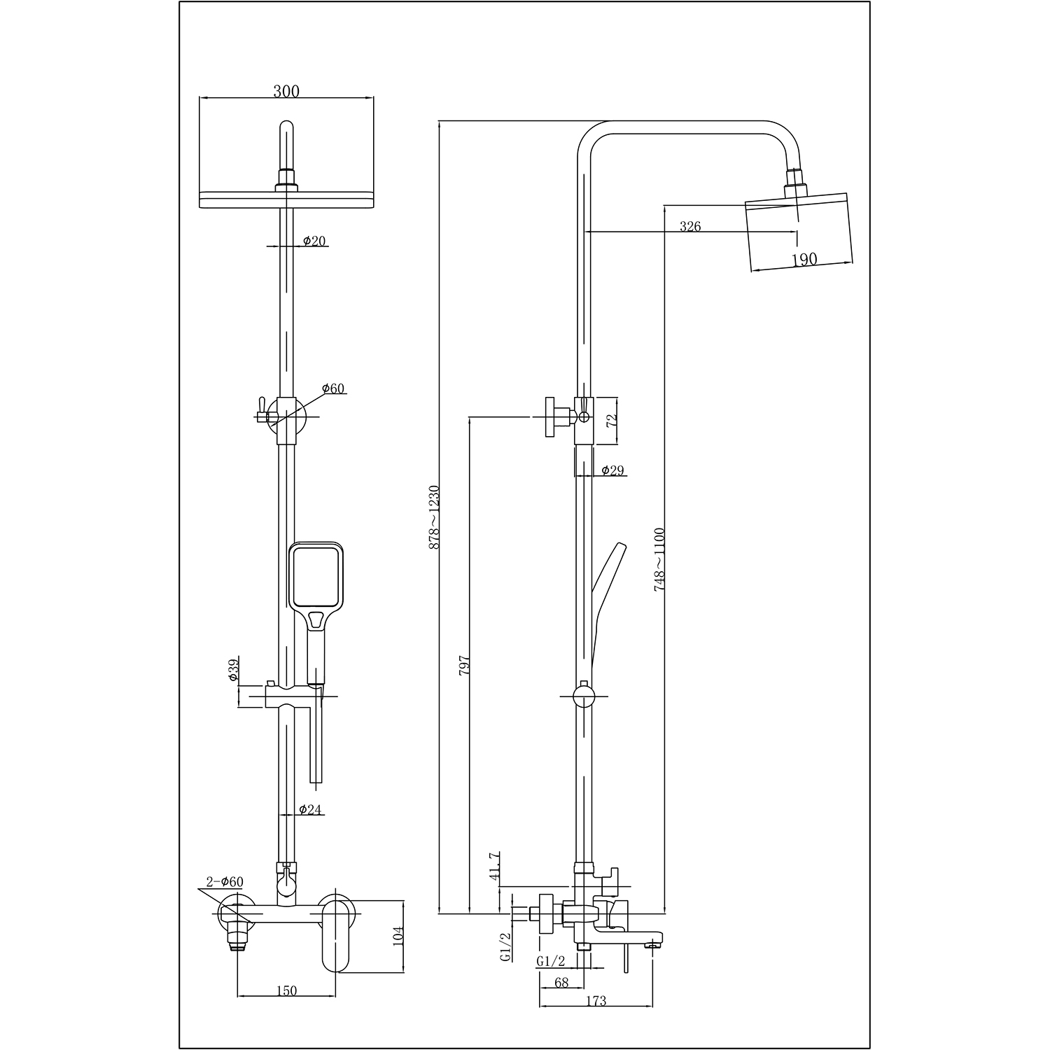 Характеристики душевая система с изливом Azario (AZ-20S)