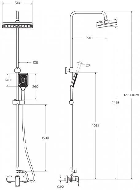 - Размер верхнего душа: 31х21 см
