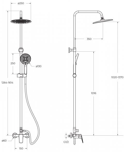 - Оснащение: эксцентрики, дивертор, душевой шланг ПВХ длиной 150 см, ручной душ 3-х режимный, верхний душ, смеситель