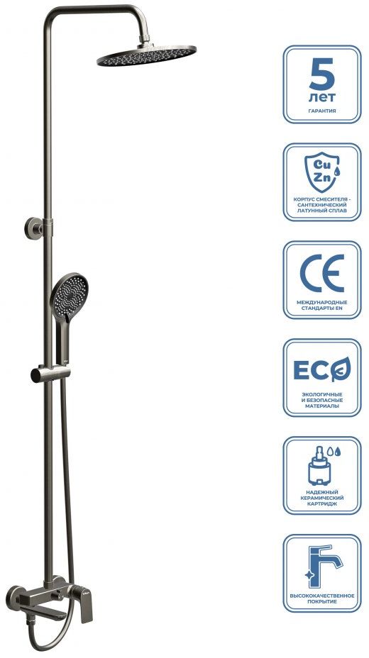 Душевая стойка BelBagno MARINO-VSCM-GM, оружейная сталь