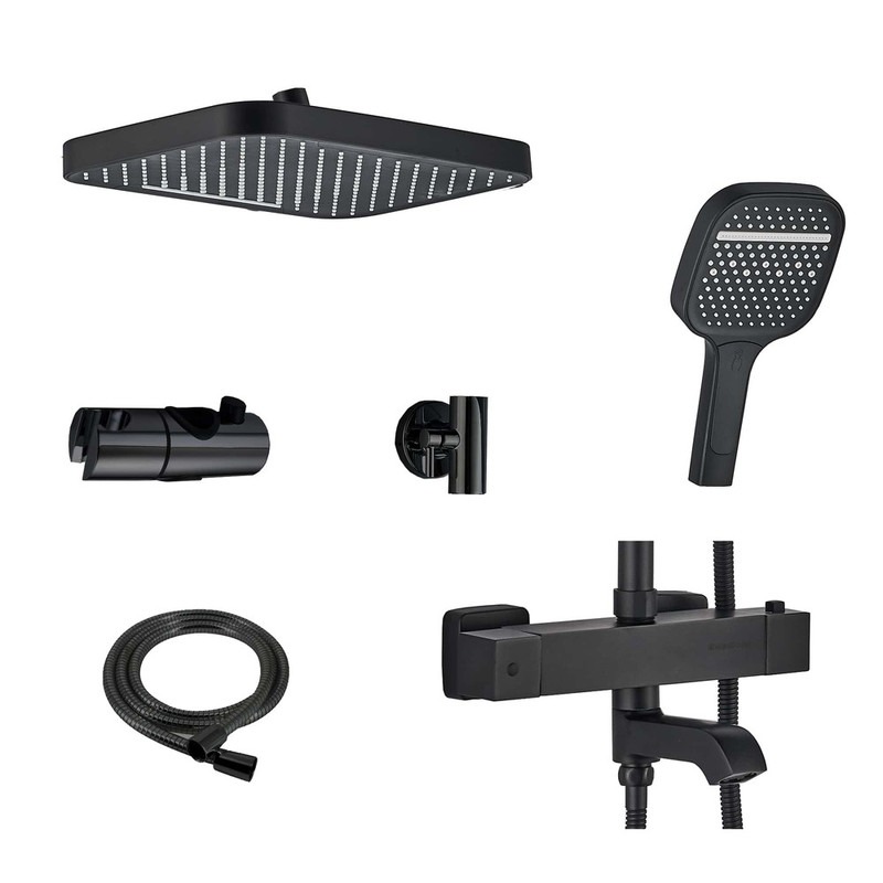 Душевая стойка c термостатом EvaGold Pacific EG400048, материал латунь, цвет чёрный.