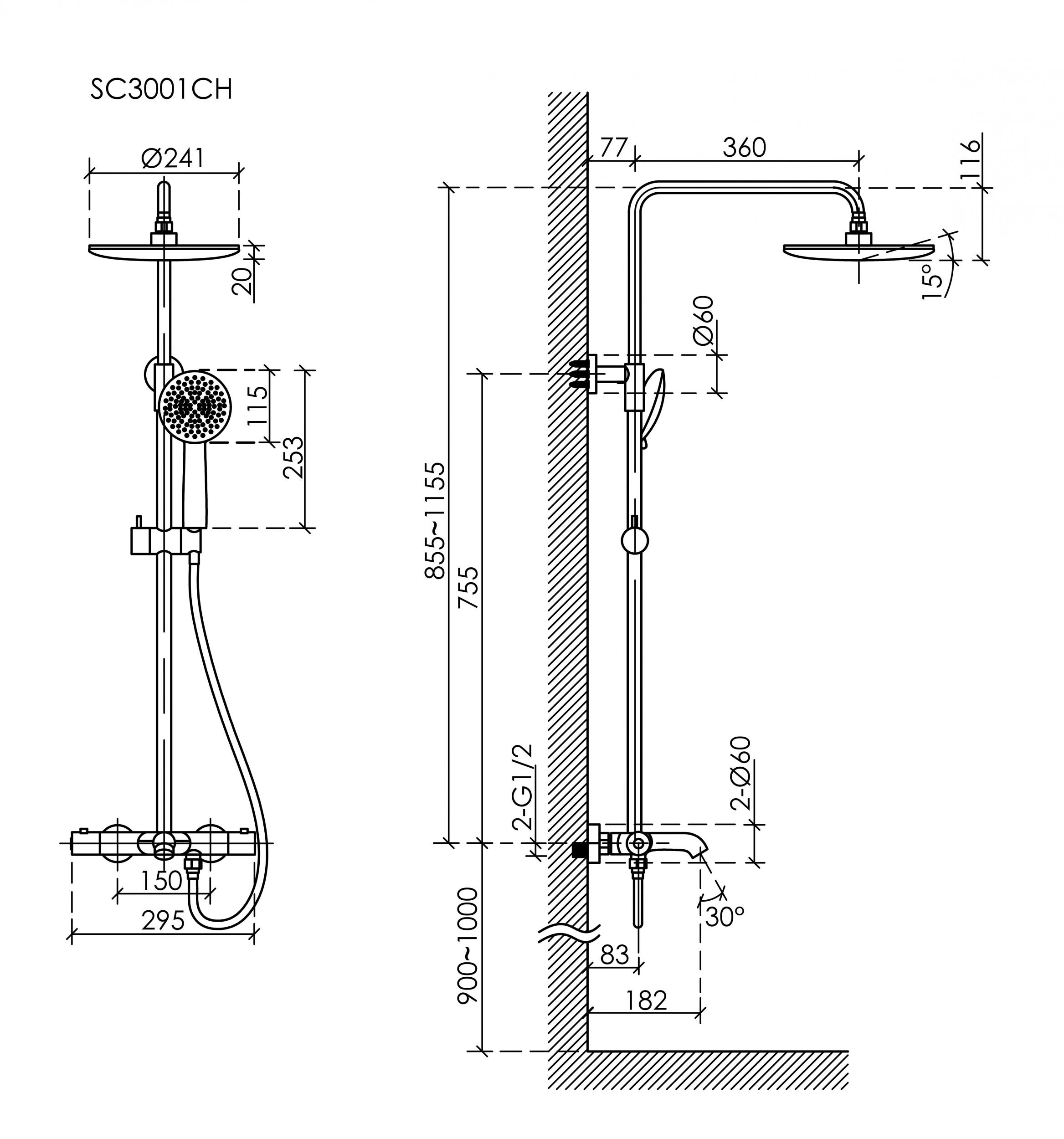 Характеристики душевая система с изливом Sancos (SC3001CH)