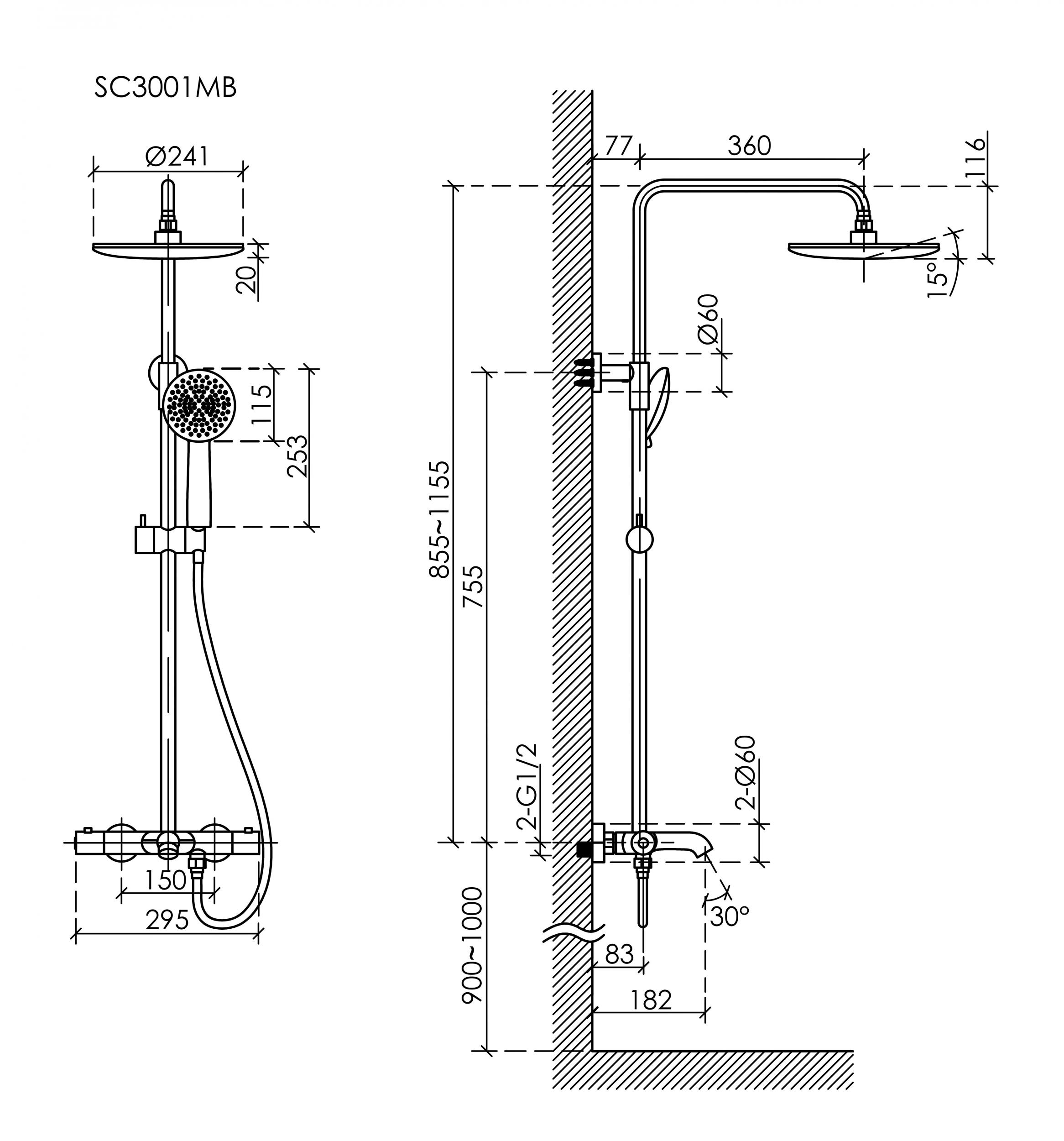 Характеристики душевая система с изливом Sancos (SC3001MB)