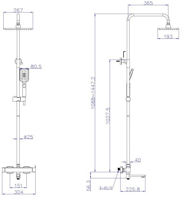 Характеристики душевая система с изливом Cezares (SLIDER-CVD-NOP)