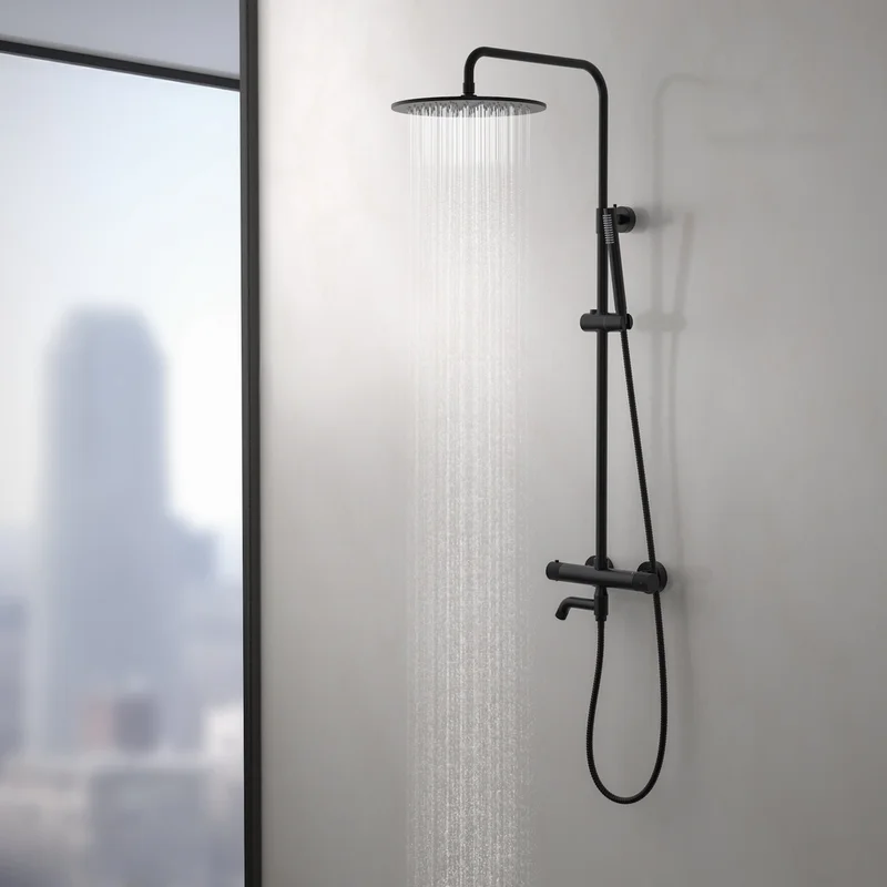 Душевая стойка для ванны с термостатом Timo Saona SX-2380/03, чёрный матовый