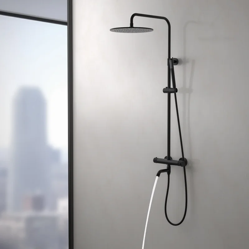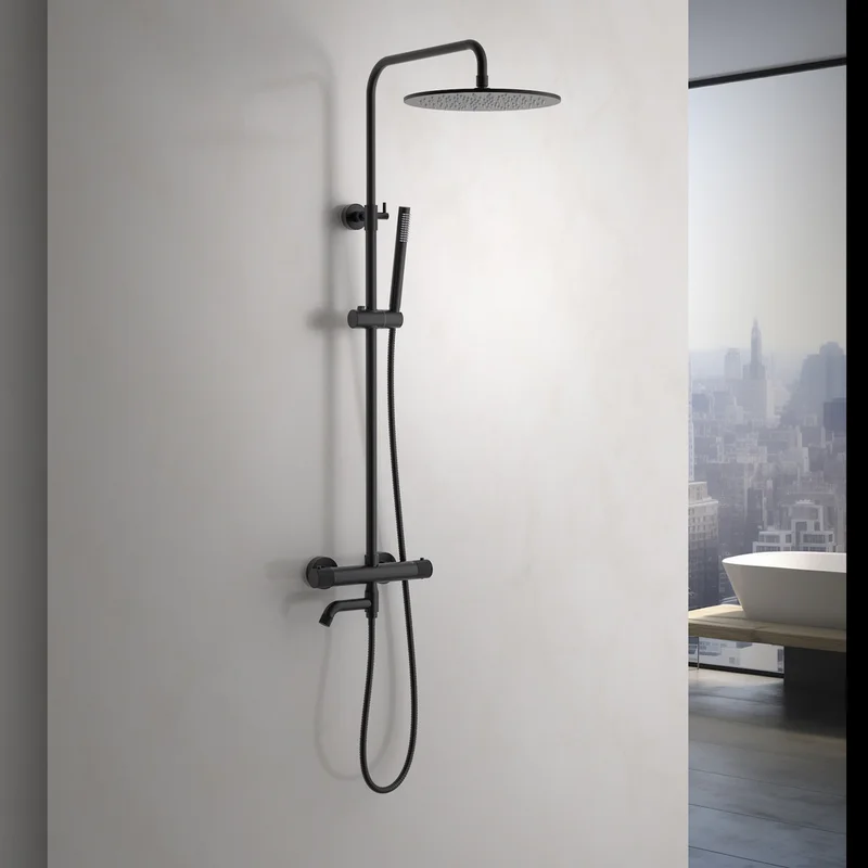 Душевая стойка для ванны с термостатом Timo Saona SX-2380/03, чёрный матовый фото