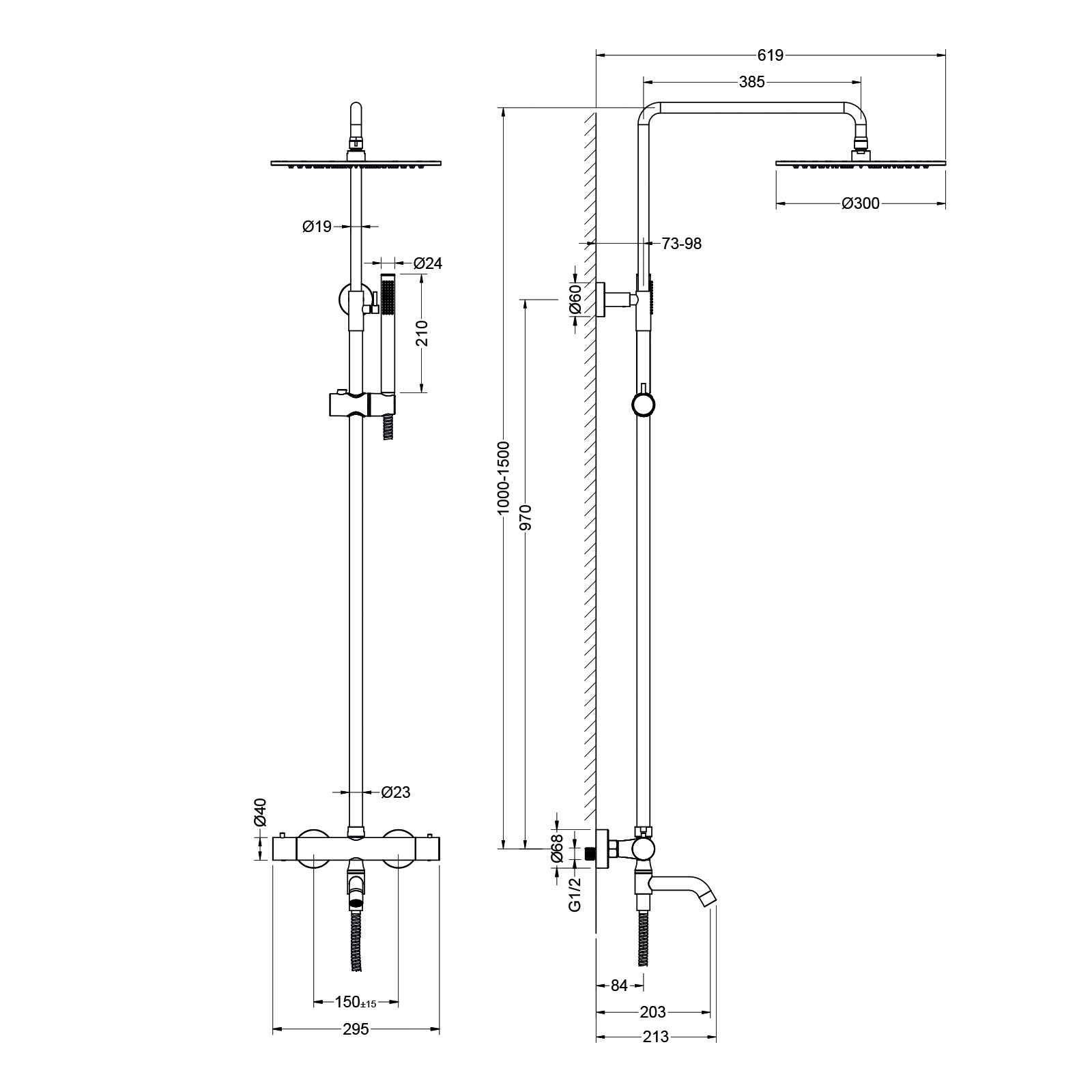 - Размер верхнего душа Ø 300 мм
